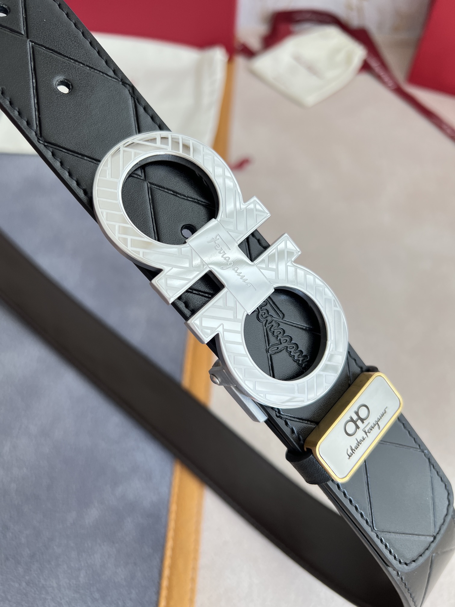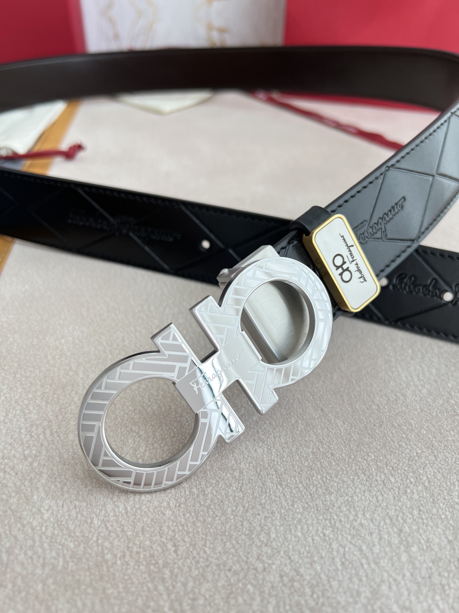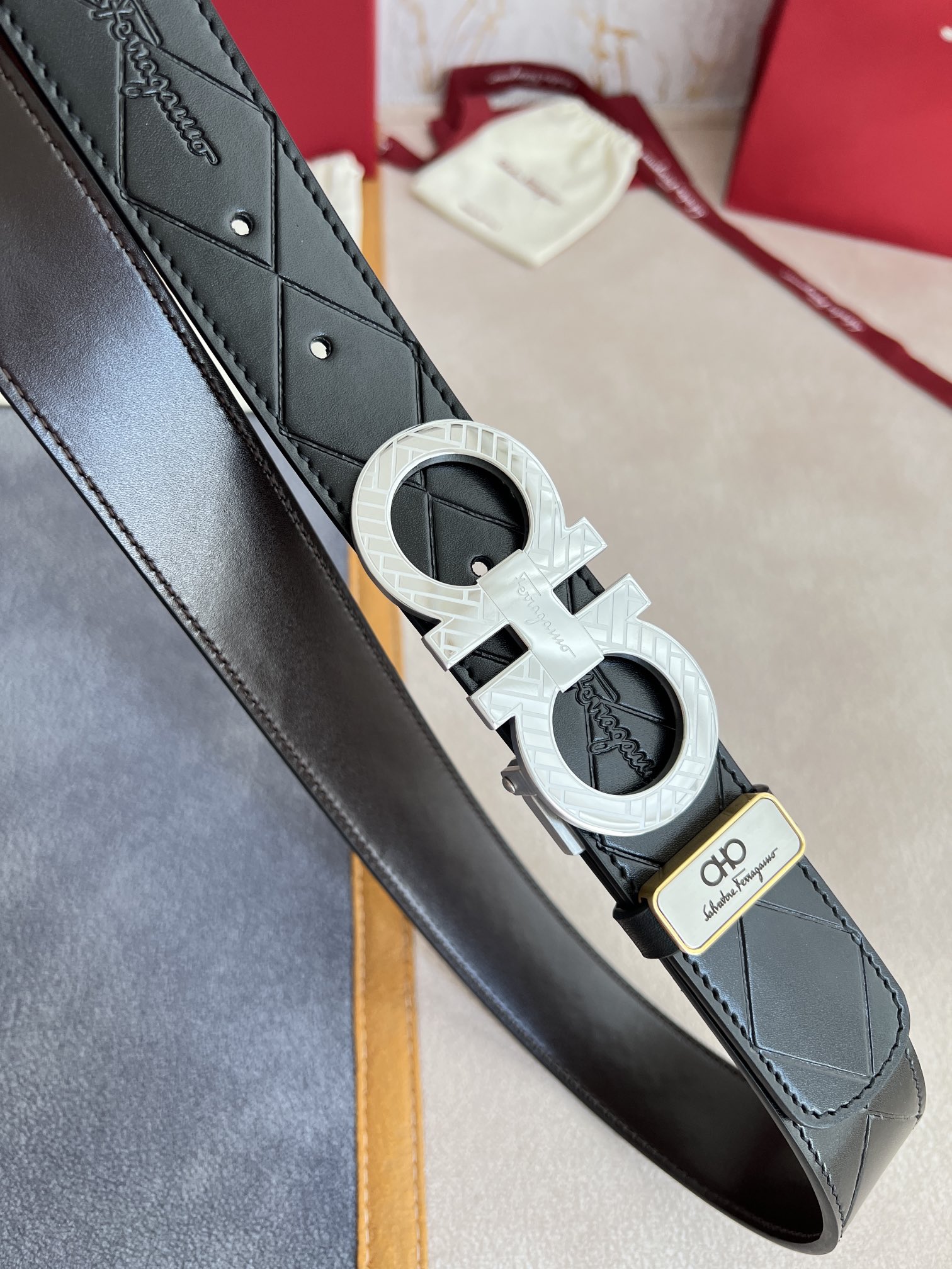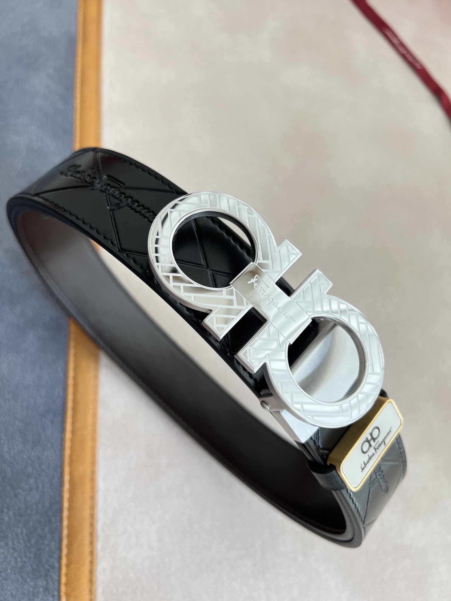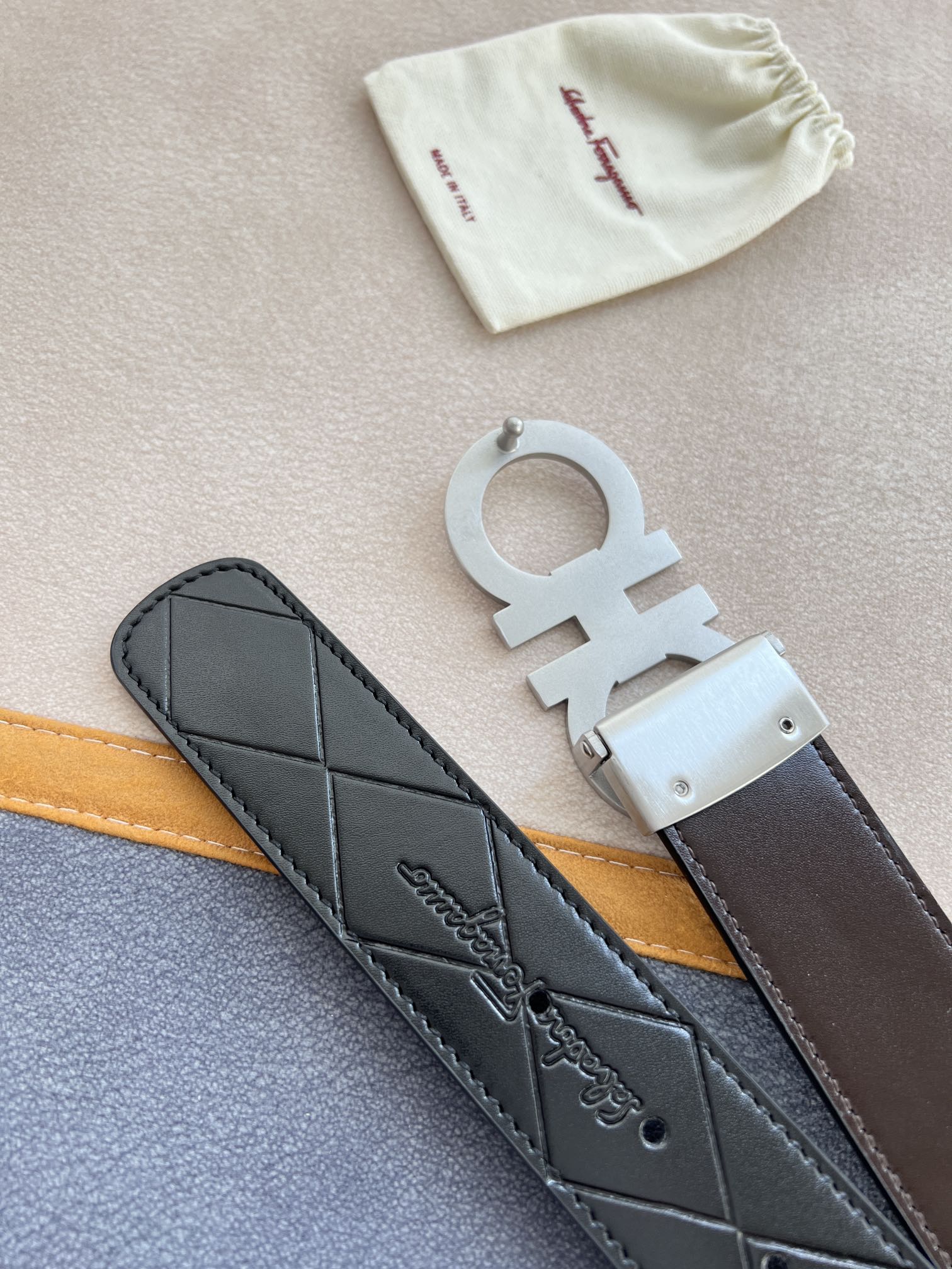I0 Ferragamo 菲拉格慕 腰带·皮带·原单 型号:挂扣,纯钢材质挂扣,实物拍摄,头层牛皮 材料:百分百头层牛皮,保证真皮.纯钢材质,永不掉色,双面可用专柜同等质量,经典头层牛皮双面光滑平面印花,黑咖,银扣,纯钢材质花纹挂扣,带身可自由裁剪,可双面使用,送人自用首选 包装:请认准如图专柜包装,赠送打孔器,原版电子票,宽度3.5mm