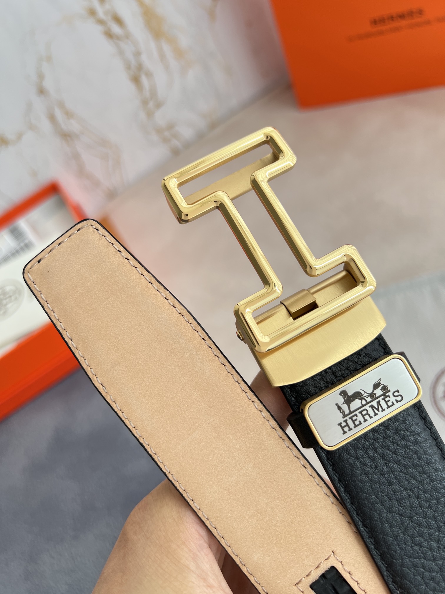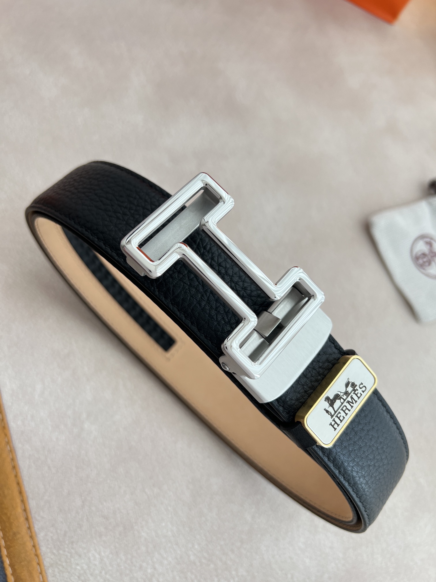 I0 Hermes 爱玛仕 自动扣皮带腰带 型号:自动带身,纯钢经典自动扣,自动带身 腰带:百分百头层牛皮,自动带身,保证真皮.24k纯钢扣永不掉色专柜同等质量, 双面头层牛皮,头层牛皮荔枝纹头层树膏磨砂皮底,纯钢材质自动扣,可自由裁剪,送人自用首选 包装请认准如图专柜包装,赠送打孔器,原版电子票,宽度3.5cm