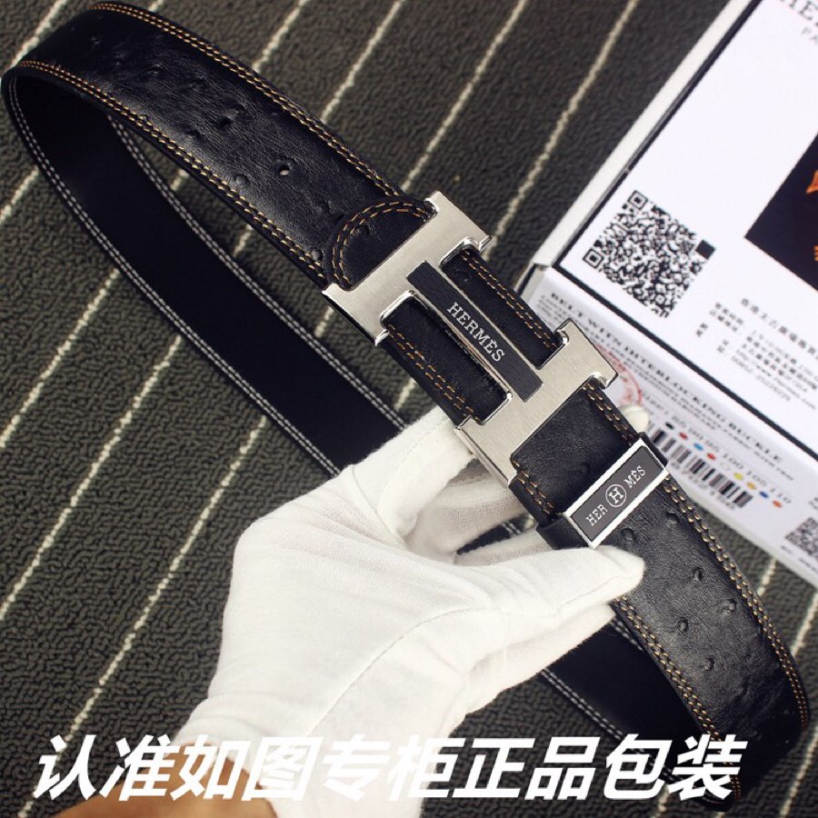I0 Hermes 爱玛仕 鸵鸟纹 赠送打孔器 材料:百分百头层牛皮皮带,24k纯钢扣中间带logo字母鸵鸟纹纹路保证真皮.专柜同等质量, 送人自用首选 包装请认准如图专柜包装,发票齐全,宽度3.8mm