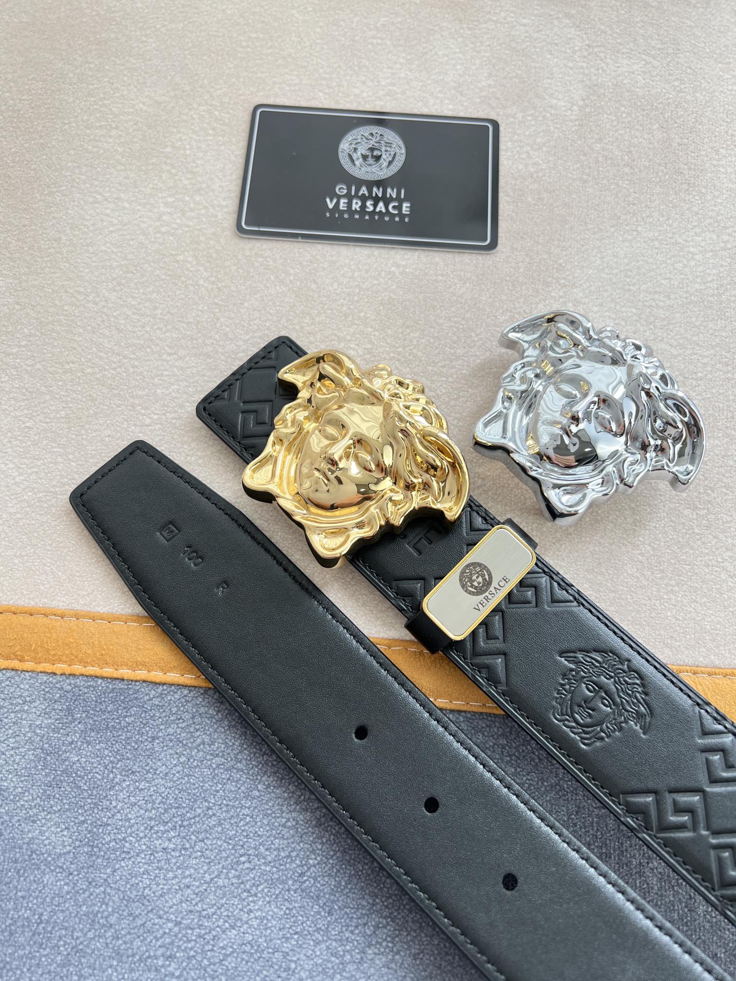 I0 VERSACE.范思哲原单腰带·皮带 型号:挂扣,经典人头纯铜材质扣头,图片实物拍摄 材料:百分百头层牛皮,保证真皮.24k纯铜扣双面可用专柜同等质量, 双面头层牛皮经典人头印花头层平纹皮底,经典人头纯铜材质扣头,双面可用,送人自用首选 包装请认准如图专柜包装,赠送打孔器,原版电子发票,宽度3.8mm