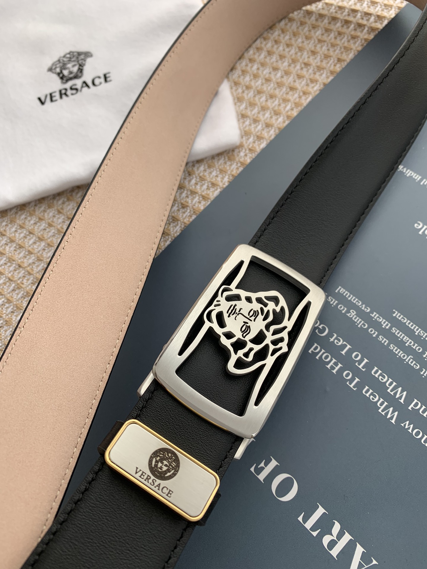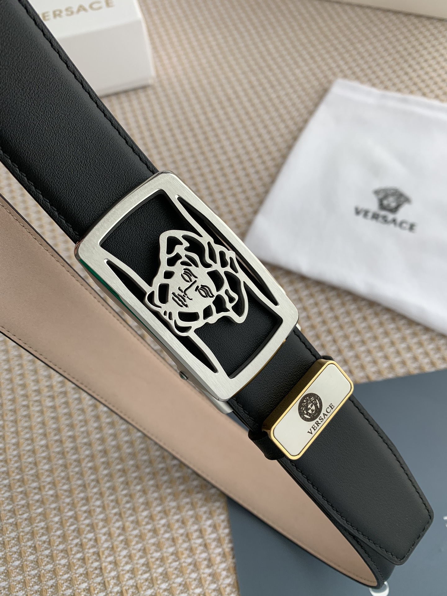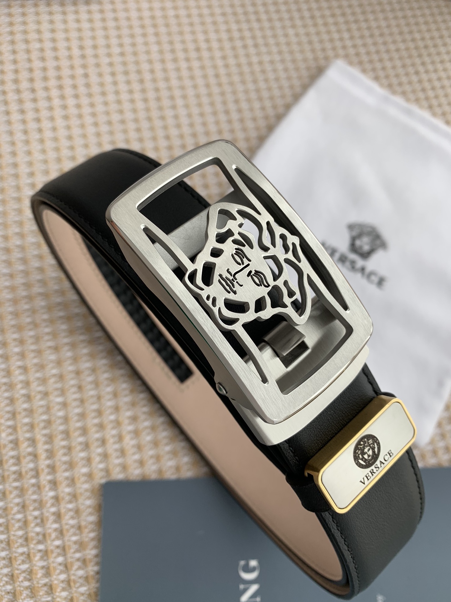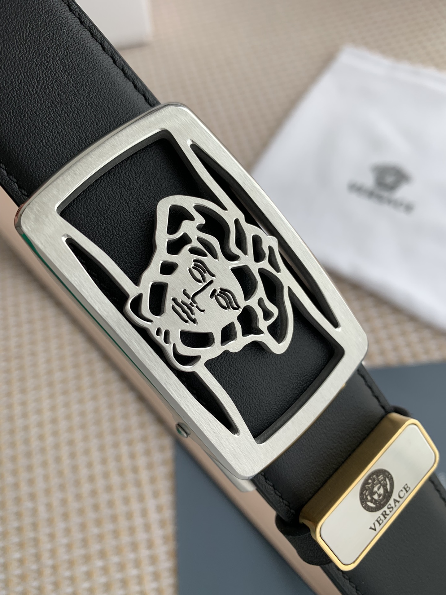 I0 Versace 范思哲 VERSACE.自动扣 型号:自动带身,纯钢材质经典人头自动扣,图片实物拍摄 腰带:百分百头层牛皮,自动带身,保证真皮.24k纯钢扣永不掉色专柜同等质量,经典头层牛皮平纹头层树膏磨砂底,银扣,可自由裁剪,送人自用首选 包装请认准如图专柜包装,赠送打孔器,原版电子票,宽度3.5cm