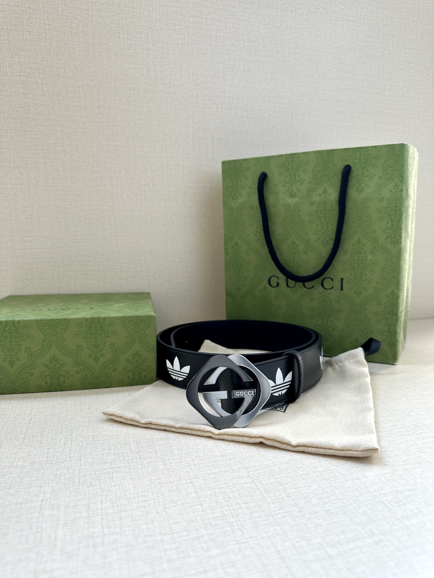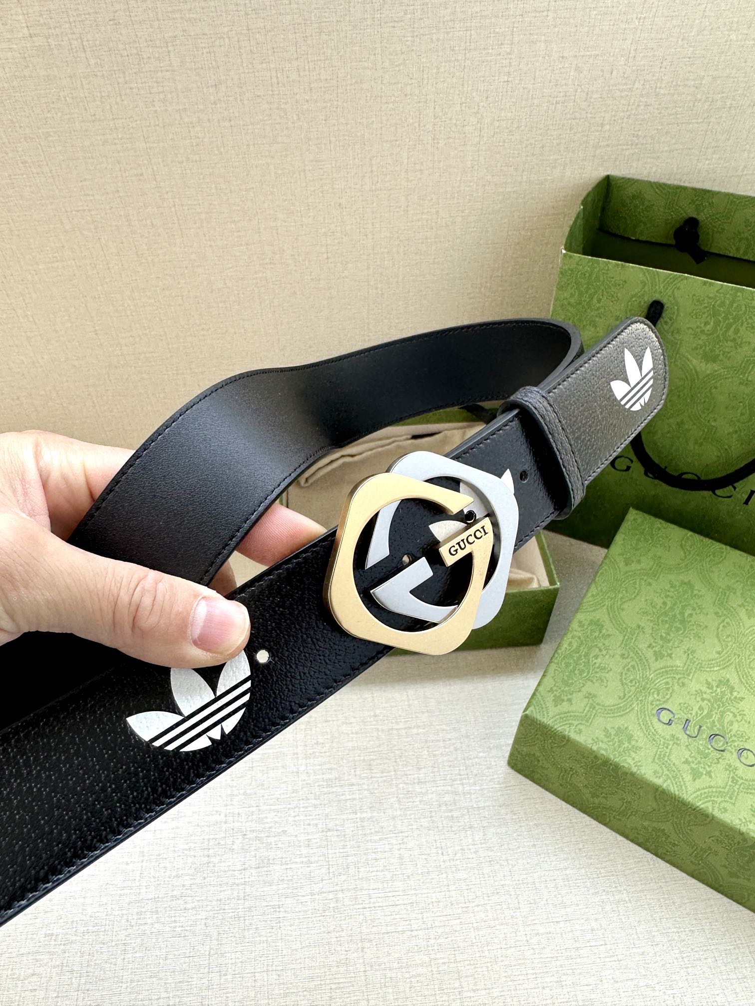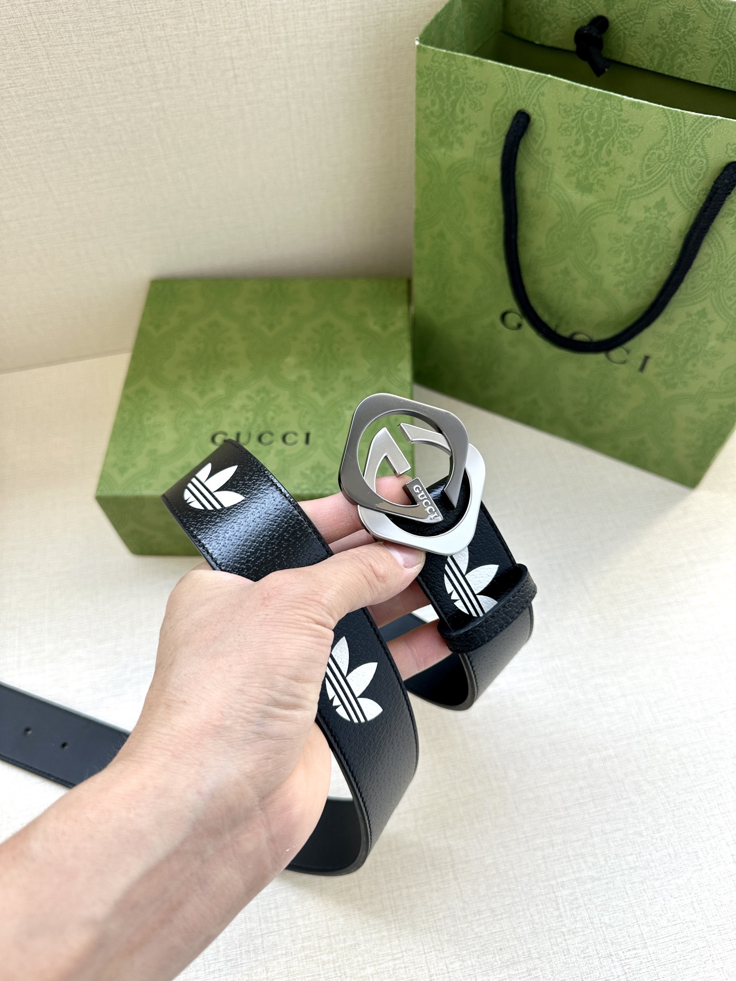 I5 宽带4.0cm GUCCI 作为adidas x Gucci联名系列之一,这款皮革腰带饰有Gucci Trefoil印花.adidas和Gucci大胆探索联名系列,织带和GG字母交织图案巧妙搭配白色三条纹和三叶草徽标.该系列灵感源自创作总监80年代和90年代的美好回忆,融汇两个品牌丰富悠久的历史传承及标志性的设计语言,塑就风格造型. 隐藏 详细信息 黑色 红色和白色上等牛皮 Trefoil印花 闪亮金色 /银色/枪色调配件 adidas x Gucci联名系列 双G钢扣