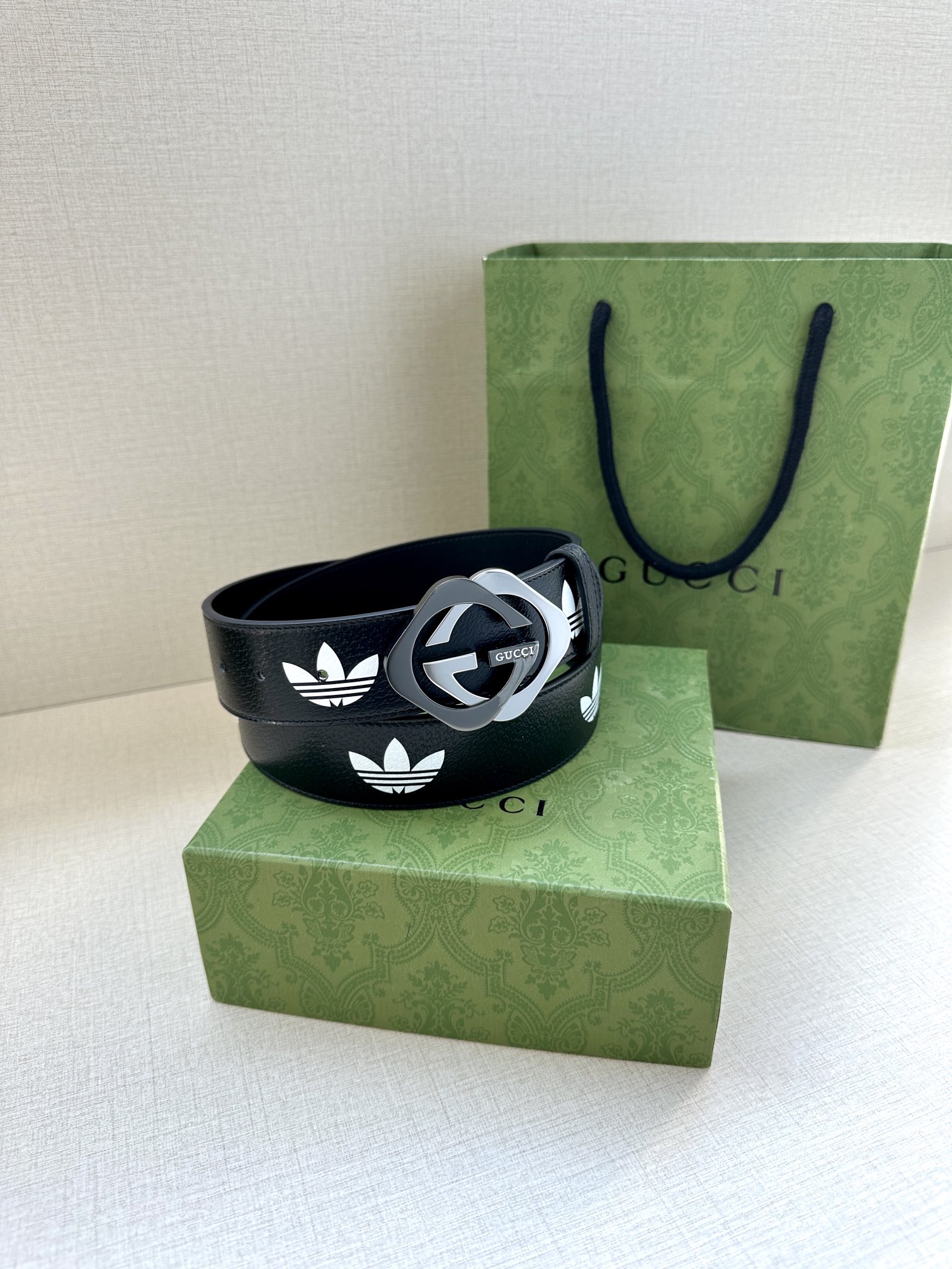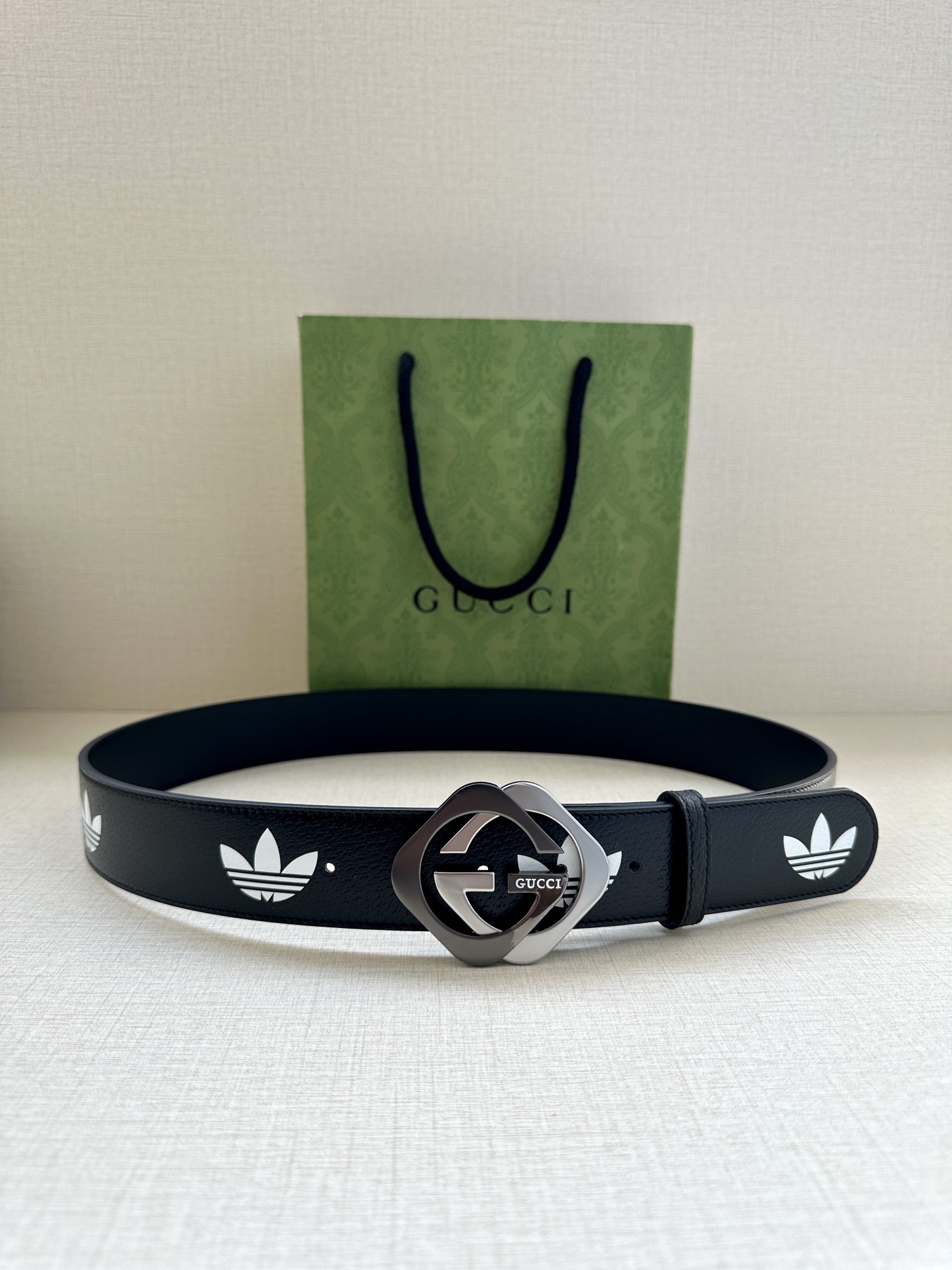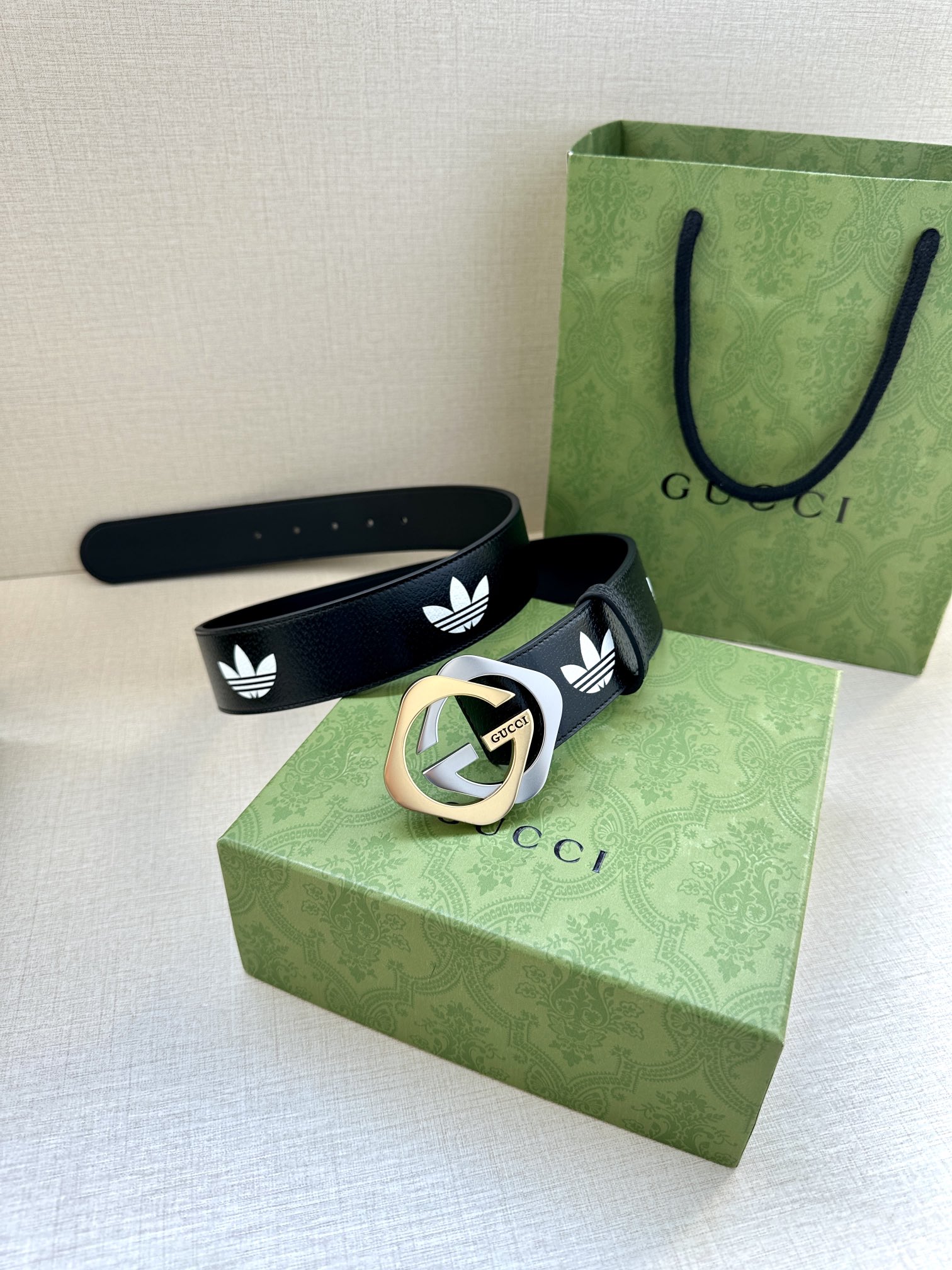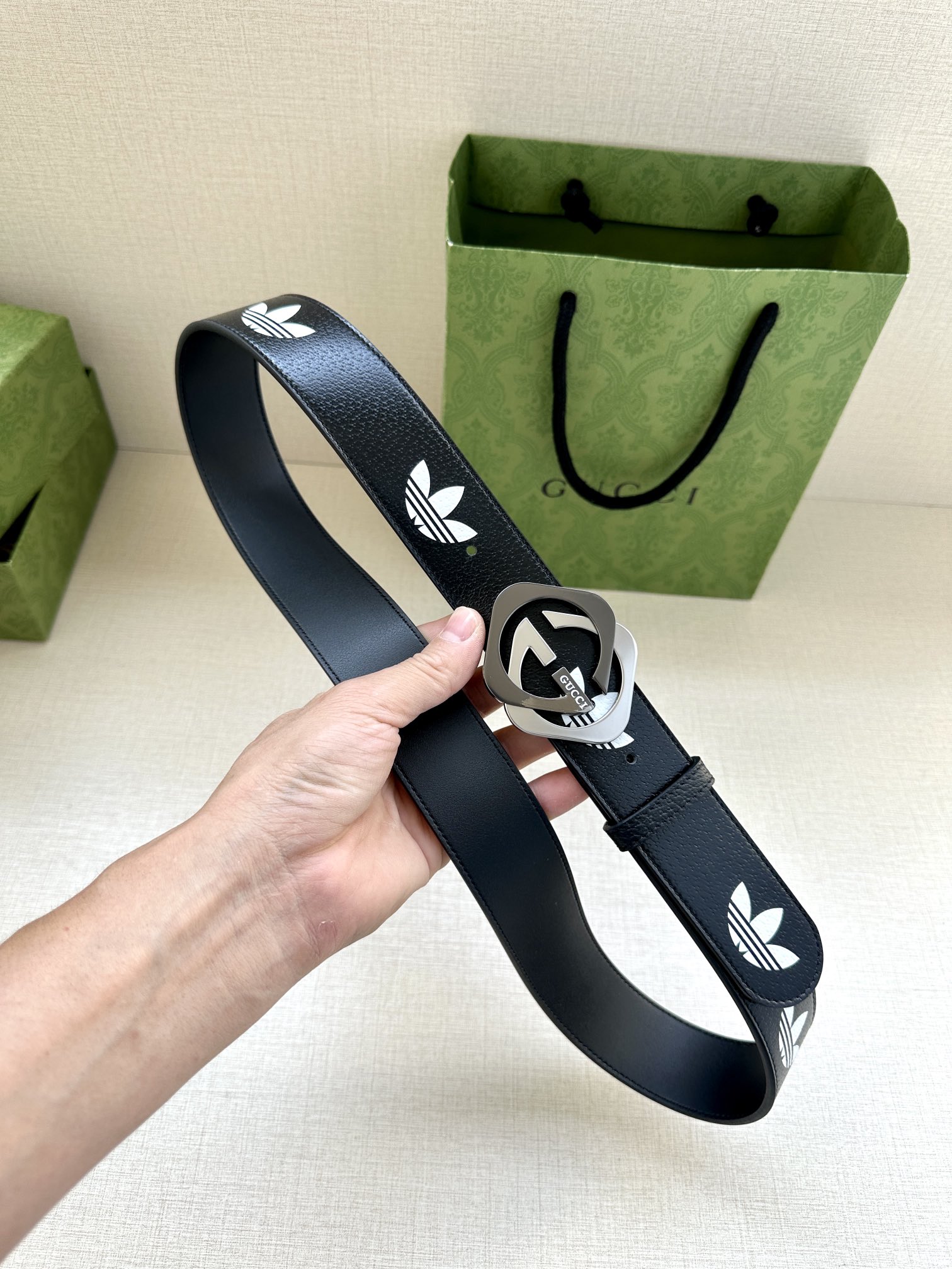 I5 宽带4.0cm GUCCI 作为adidas x Gucci联名系列之一,这款皮革腰带饰有Gucci Trefoil印花.adidas和Gucci大胆探索联名系列,织带和GG字母交织图案巧妙搭配白色三条纹和三叶草徽标.该系列灵感源自创作总监80年代和90年代的美好回忆,融汇两个品牌丰富悠久的历史传承及标志性的设计语言,塑就风格造型. 隐藏 详细信息 黑色 红色和白色上等牛皮 Trefoil印花 闪亮金色 /银色/枪色调配件 adidas x Gucci联名系列 双G钢扣