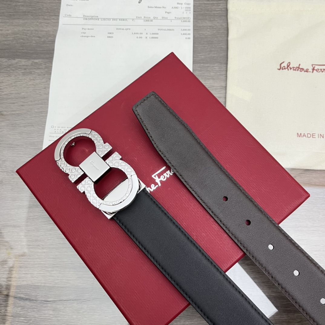 I5 Ferragamo 菲拉格慕 皮带腰带:双面使用专柜质量、百分百头层牛皮、24k纯钢扣、送人自用首选、保证真皮 包装:请认准图片专柜包装、送打孔器 全套包装 宽度:3.5cm 长度:国标cm-cm 可以自行裁剪长度