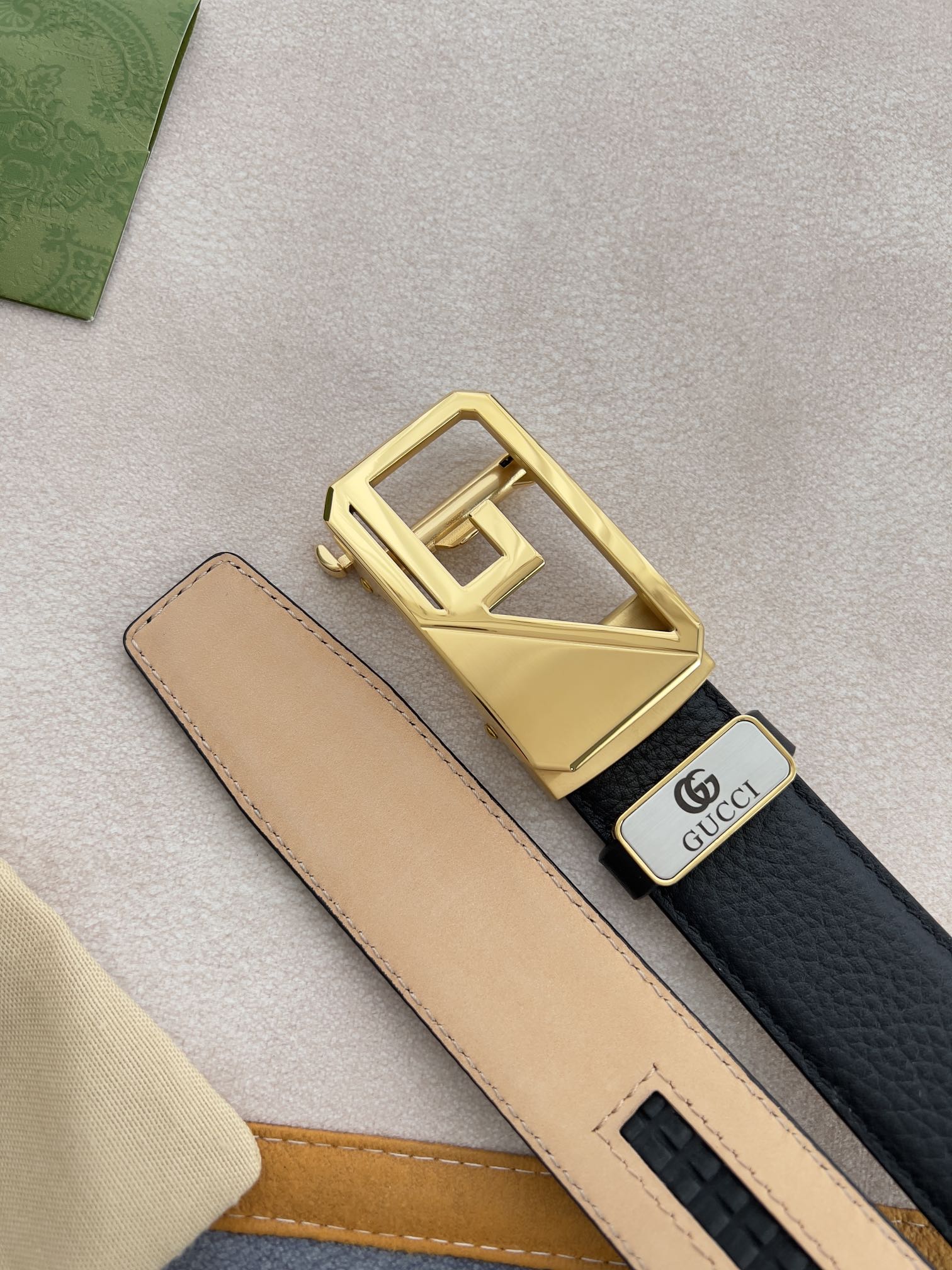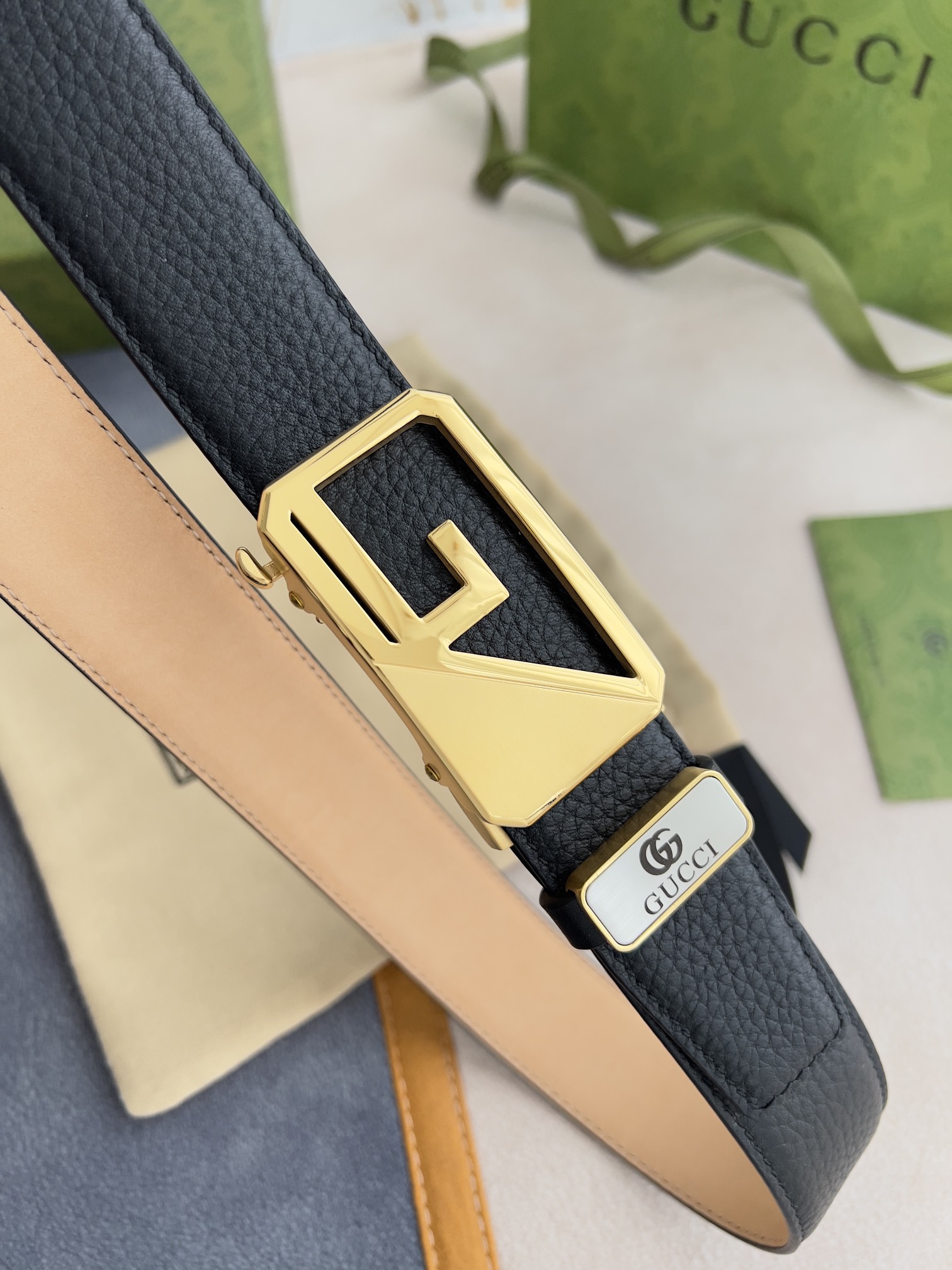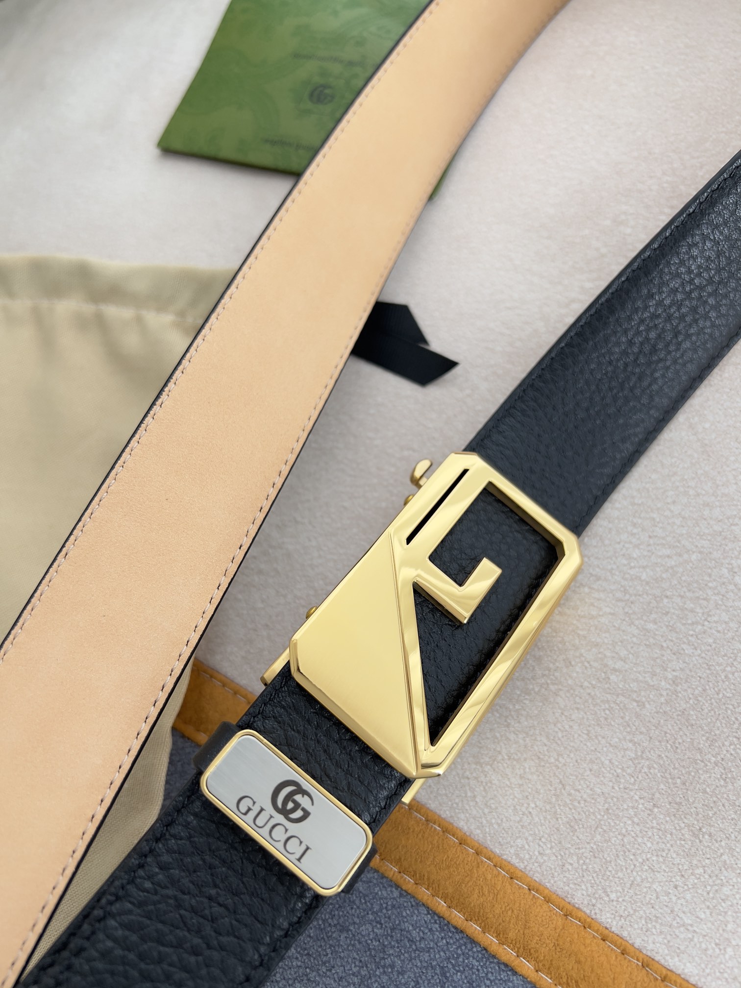 I5 Gucci 古奇 ·腰带自动带·皮带 型号:自动扣,纯钢材质自动扣,自动带身,尾部外穿款 材料:百分百头层牛皮,保证真皮.24k纯钢扣专柜同等质量, 双面头层牛皮,头层牛皮荔枝纹头层树膏磨砂皮底,金扣,可自由裁剪,经典logo,送人自用首选 包装认准如图专柜包装,赠送打孔器,原版电子票,宽度3.5cm
