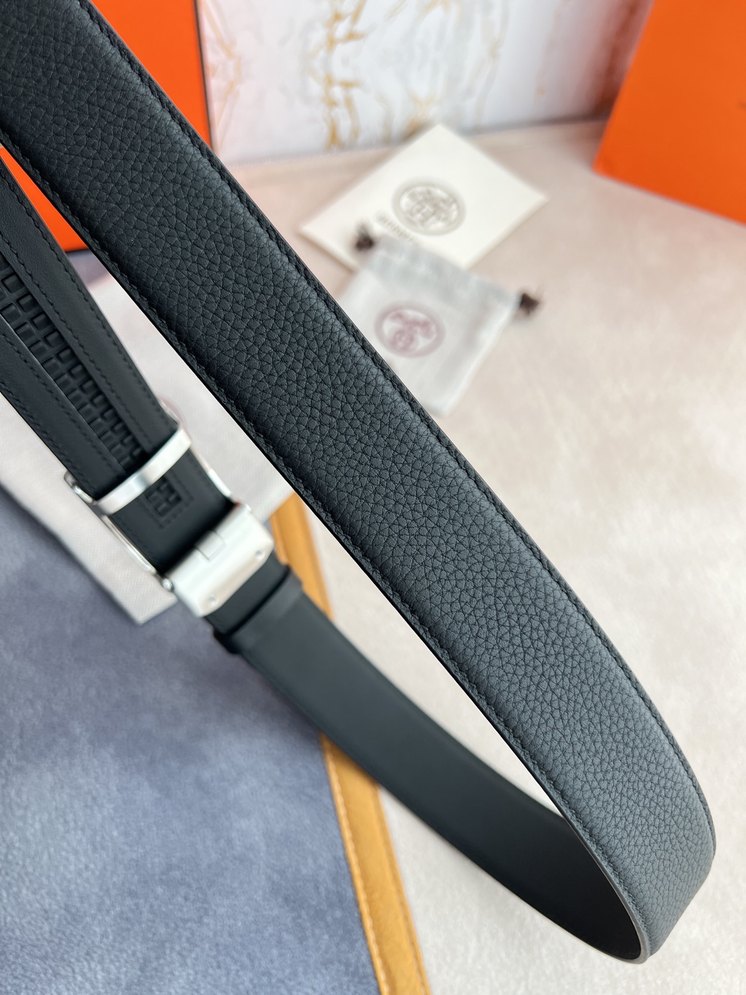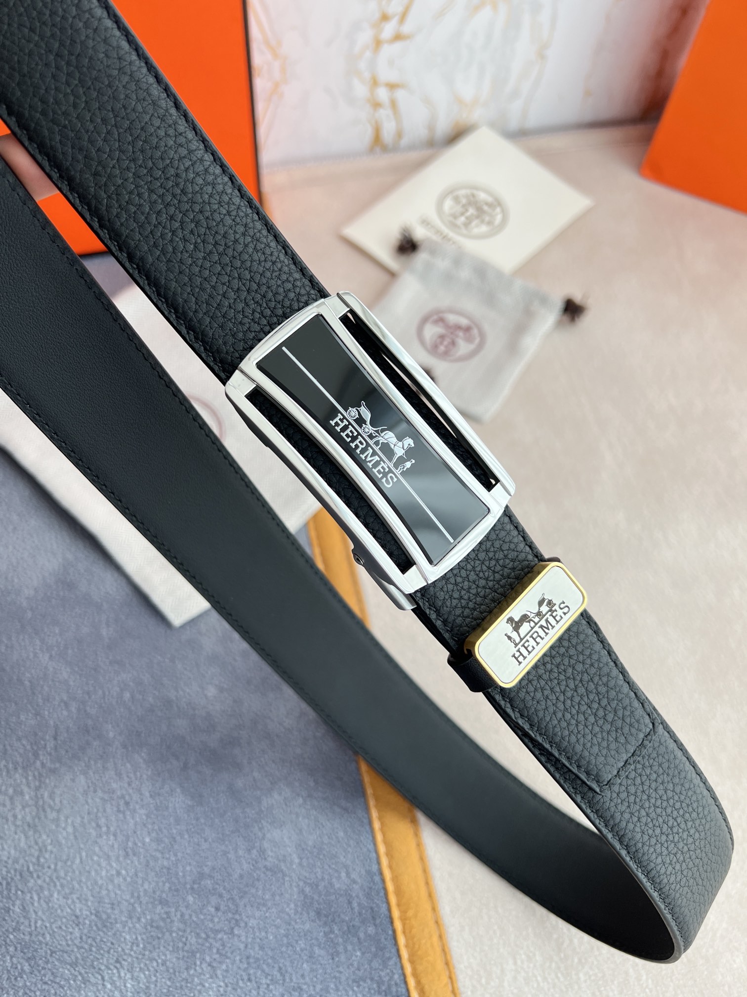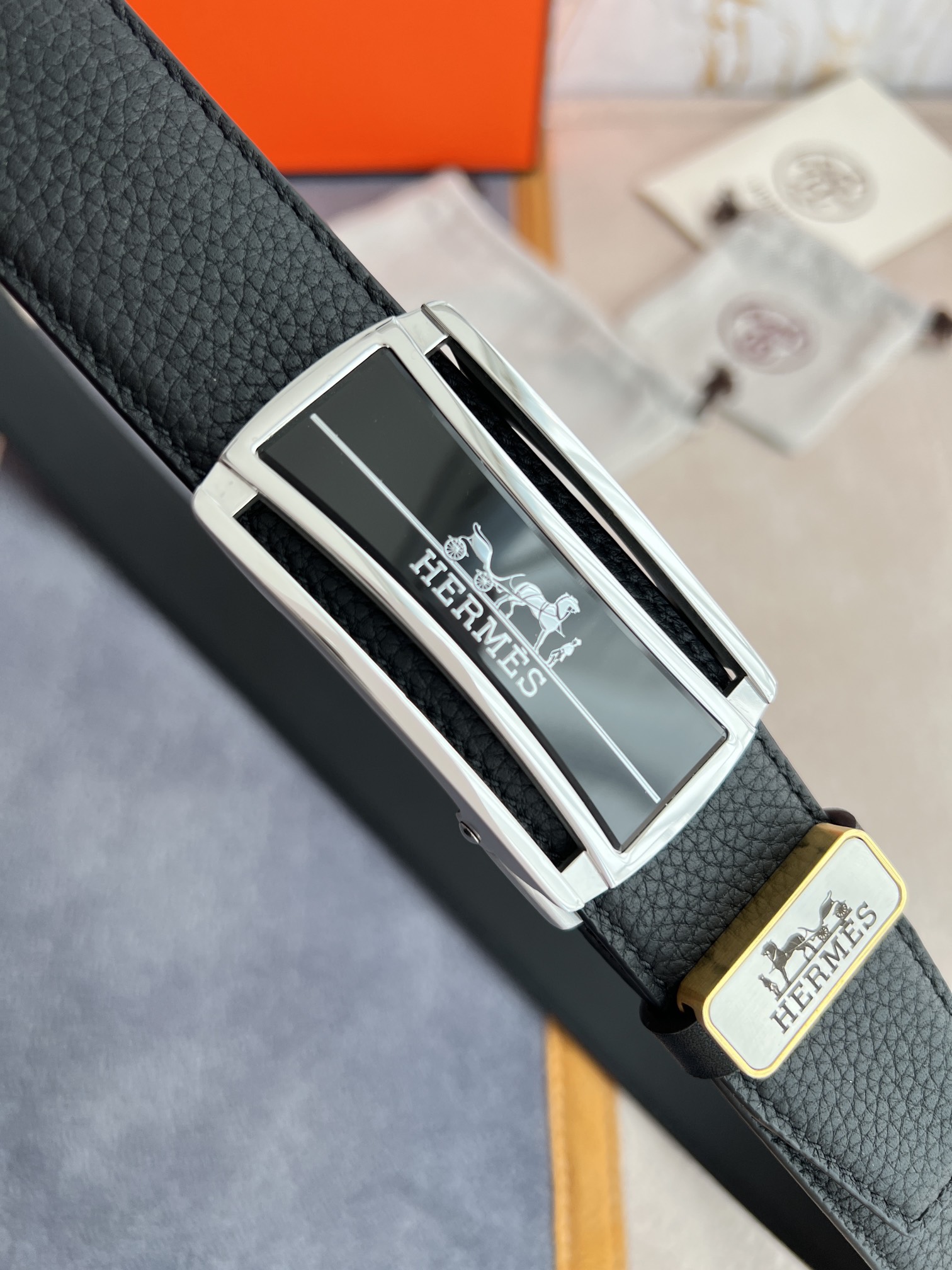 I5 Hermes 爱玛仕 自动扣皮带腰带 型号:自动带身,纯钢材质经典自动扣,自动带身 腰带:百分百头层牛皮,自动带身,保证真皮.24k纯钢扣永不掉色专柜同等质量, 双面头层牛皮荔枝纹头层牛皮平纹底,银扣,纯钢材质自动扣,可自由裁剪,送人自用首选 包装请认准如图专柜包装,赠送拆装工具,原版电子票,宽度3.5cm
