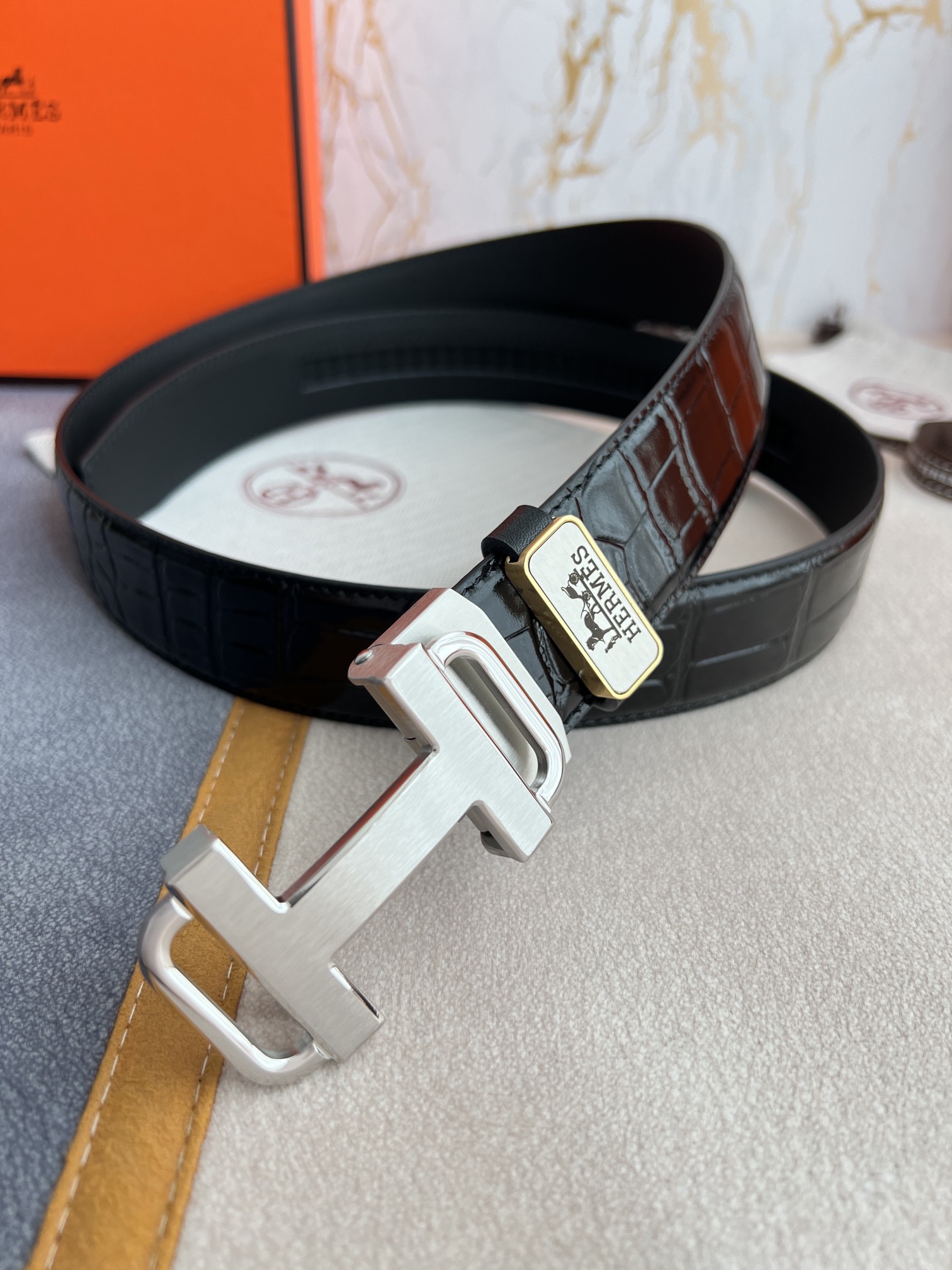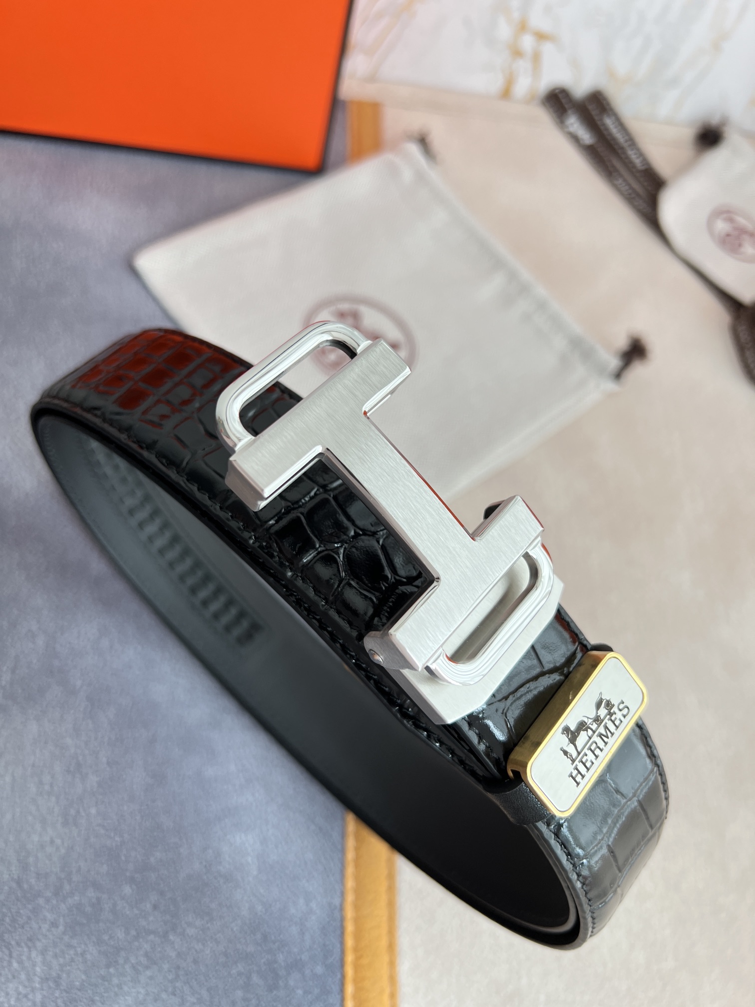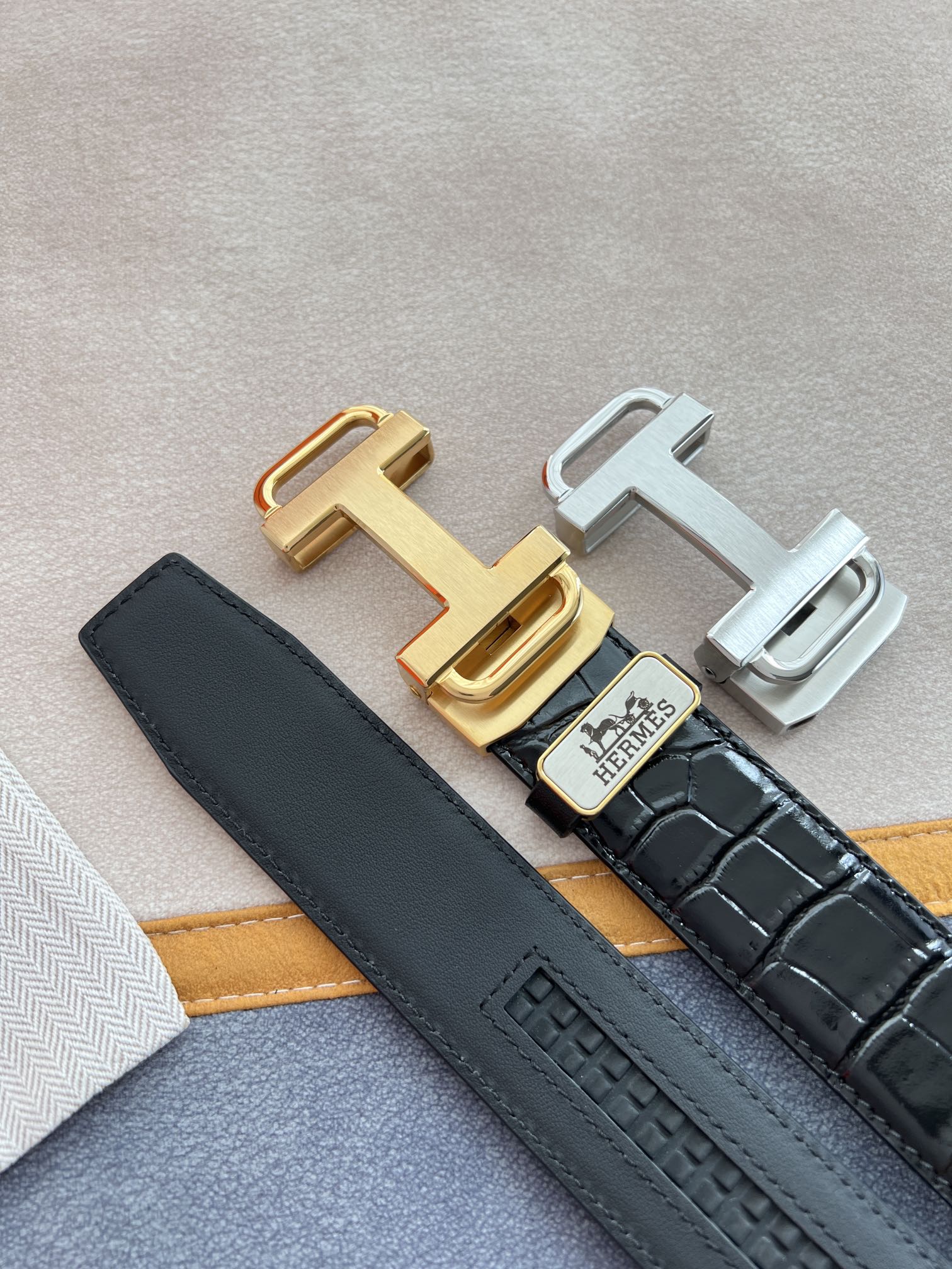 I5 Hermes 爱玛仕 自动扣皮带腰带 型号:自动带身,纯钢材质经典自动扣,自动带身 腰带:百分百头层牛皮,自动带身,保证真皮.24k纯钢扣永不掉色专柜同等质量, 双面头层牛皮鳄鱼纹头层平纹皮底,纯钢材质自动扣,可自由裁剪,送人自用首选 包装请认准如图专柜包装,赠送拆装工具,原版电子票,宽度3.5cm