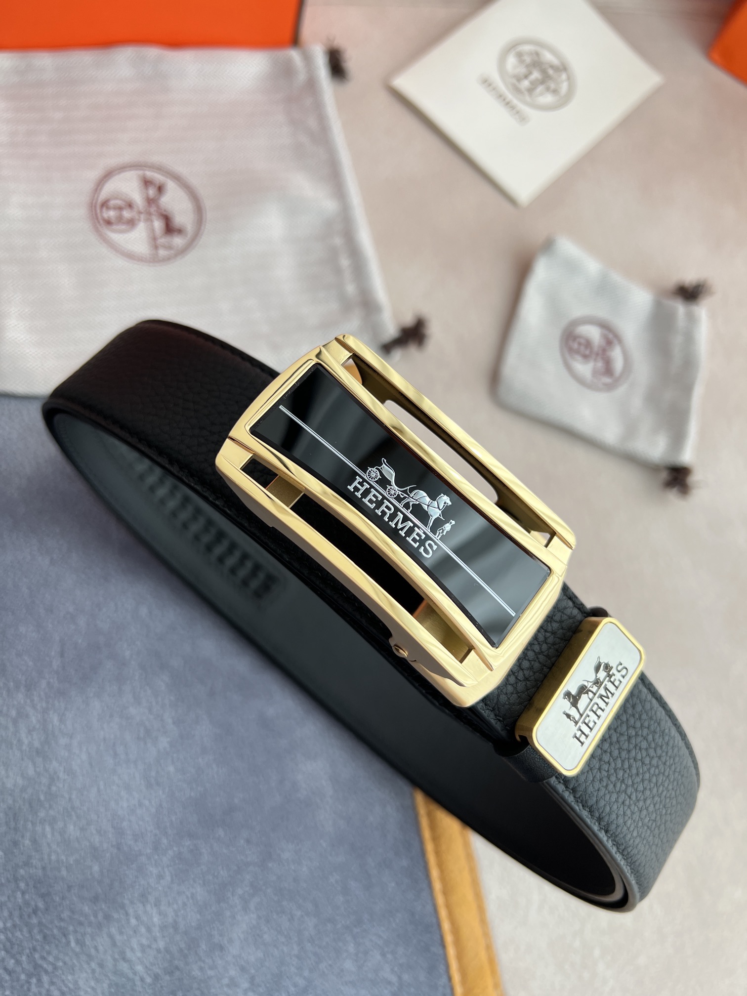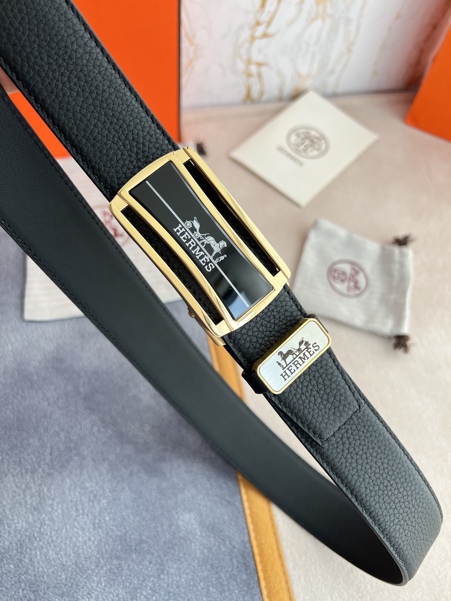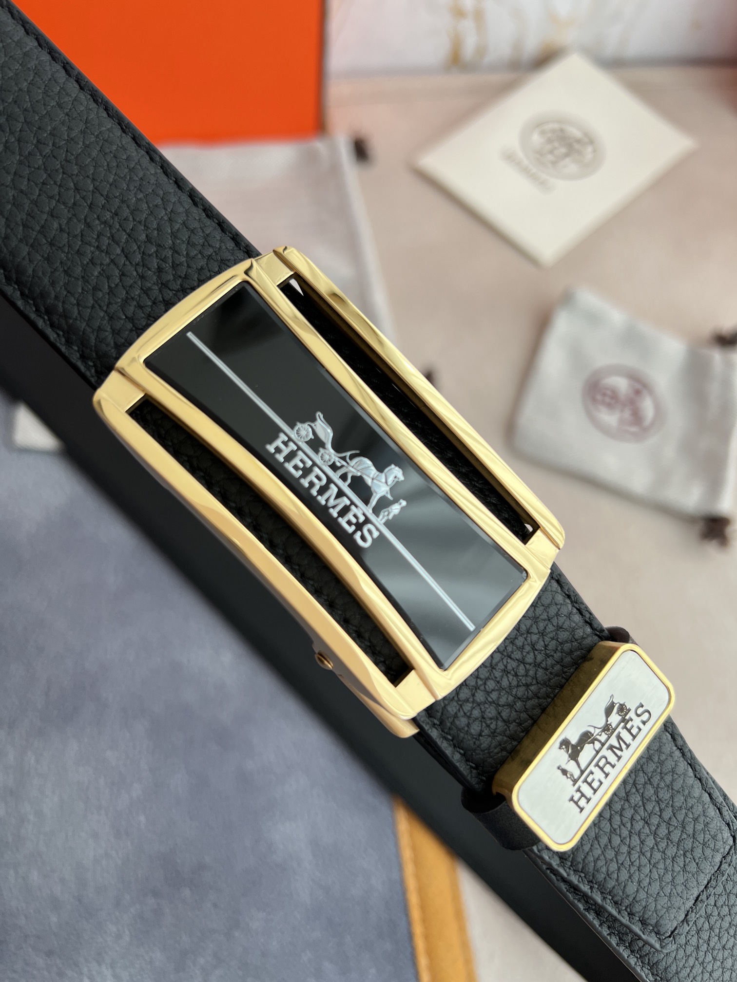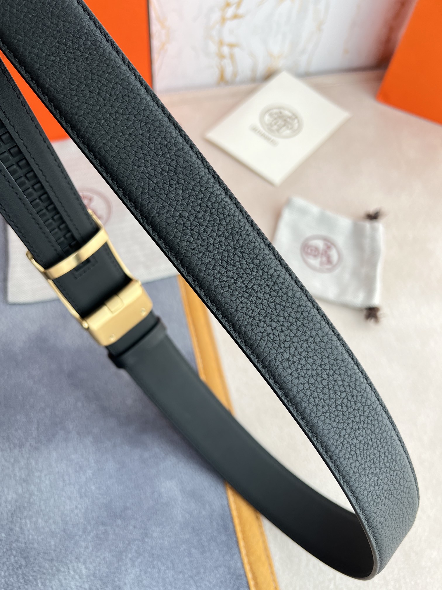 I5 Hermes 爱玛仕 自动扣皮带腰带 型号:自动带身,纯钢材质经典自动扣,自动带身 腰带:百分百头层牛皮,自动带身,保证真皮.24k纯钢扣永不掉色专柜同等质量, 双面头层牛皮荔枝纹头层牛皮平纹底,金扣,纯钢材质自动扣,可自由裁剪,送人自用首选 包装请认准如图专柜包装,赠送拆装工具,原版电子票,宽度3.5cm