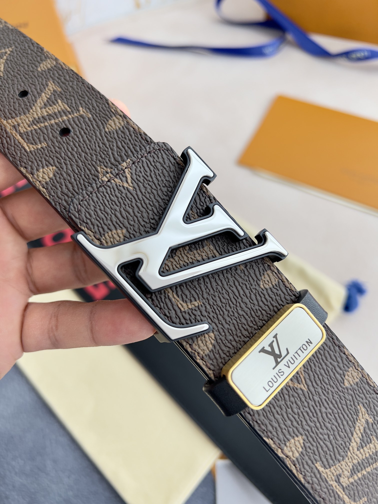 I5 Louis vuitton 路易威登 LV 腰带皮带原单 型号:挂扣,经典纯钢材质双色挂扣,图片实物拍摄 材料:头层牛皮,挂扣系列,纯钢材质扣头,钯镀电镀工艺永不掉色.原版印花咖老花头层平纹皮底黑,黑配银扣,双面可用,专柜同等质量,送人自用首选 包装如图专柜包装,赠送打孔器,原版电子票,宽度3.8cm