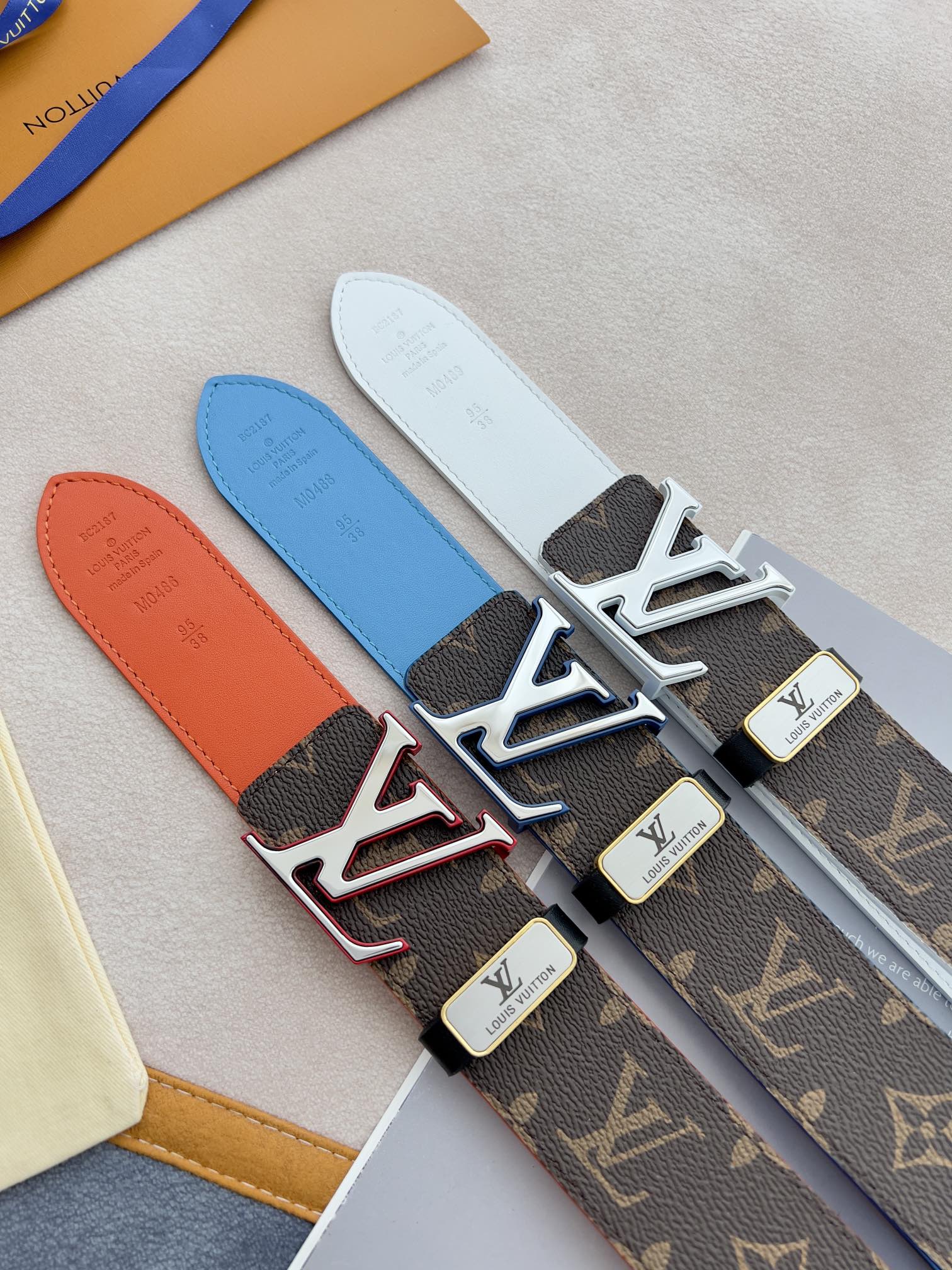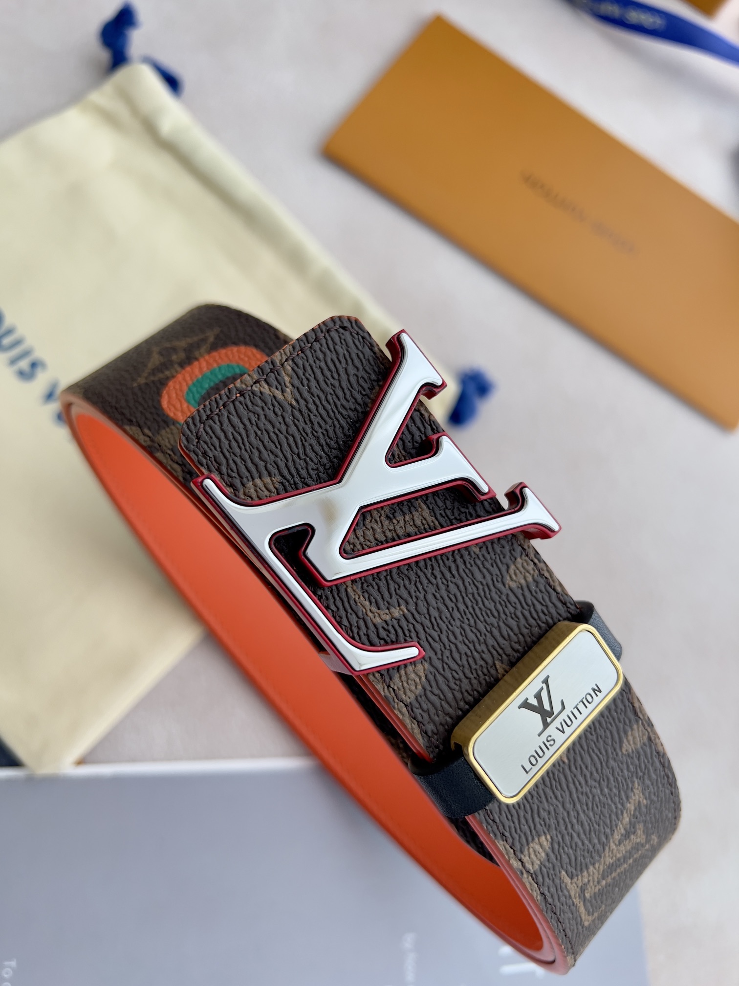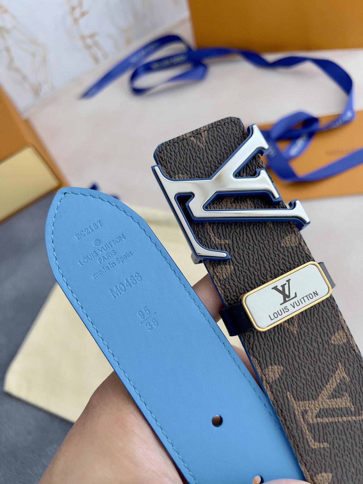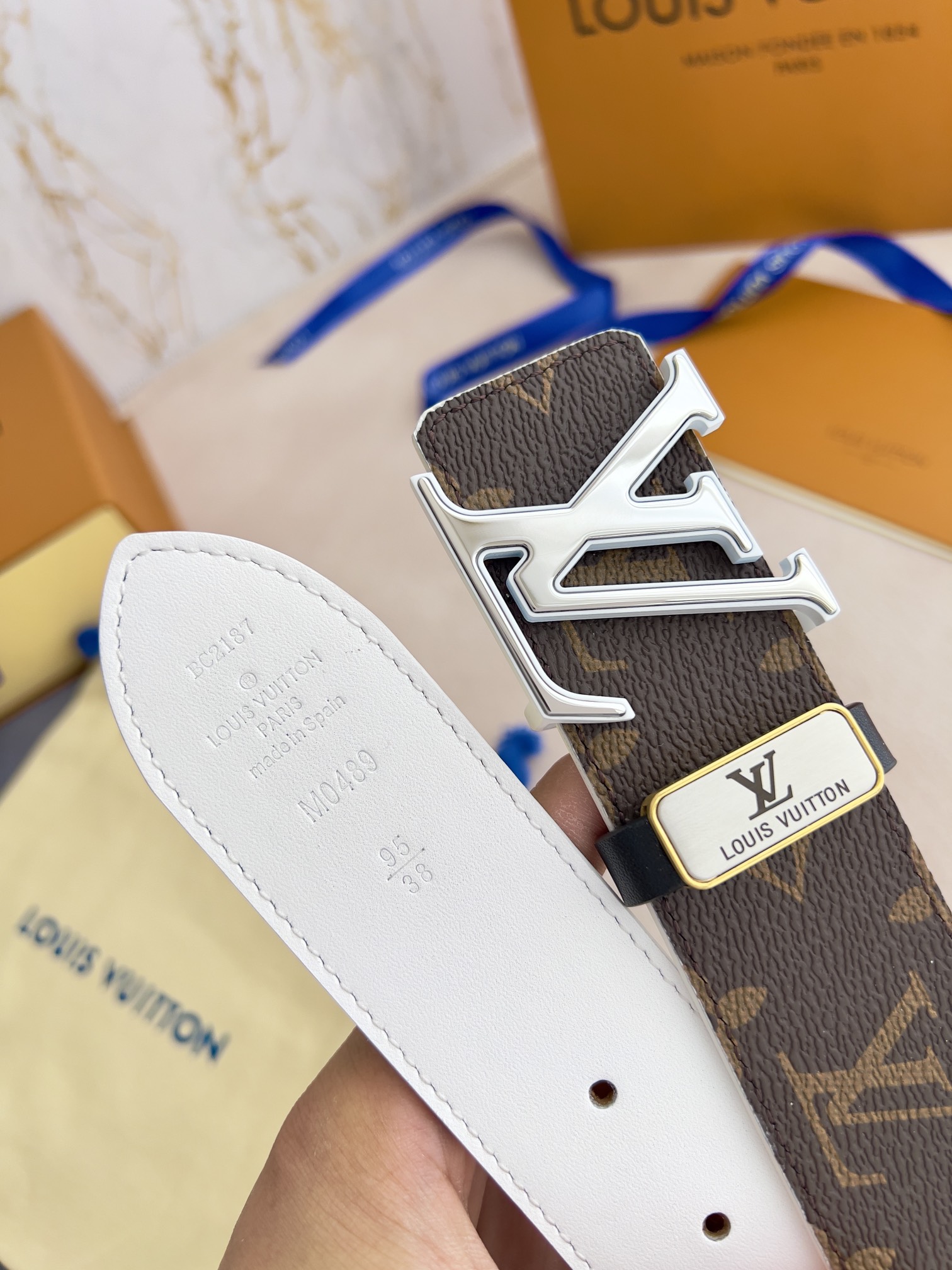 I5 Louis vuitton 路易威登 LV 腰带皮带原单 型号:挂扣,经典纯钢材质双色挂扣,图片实物拍摄 材料:头层牛皮,挂扣系列,纯钢材质扣头,钯镀电镀工艺永不掉色.原版印花咖老花头层平纹皮底,双面可用,专柜同等质量,送人自用首选 包装如图专柜包装,赠送打孔器,原版电子票,宽度3.8cm