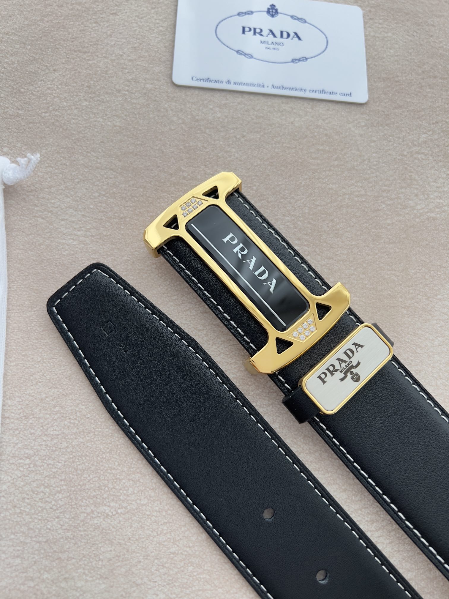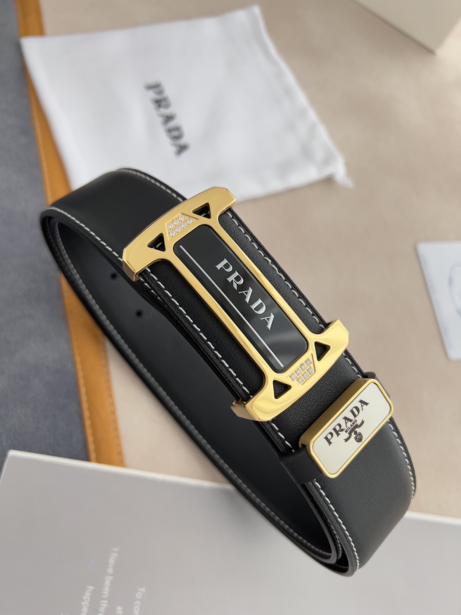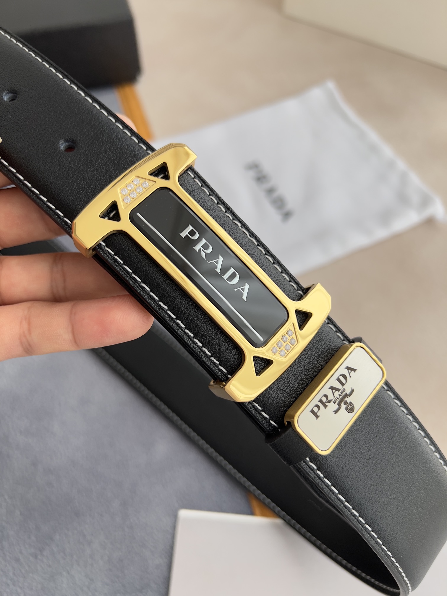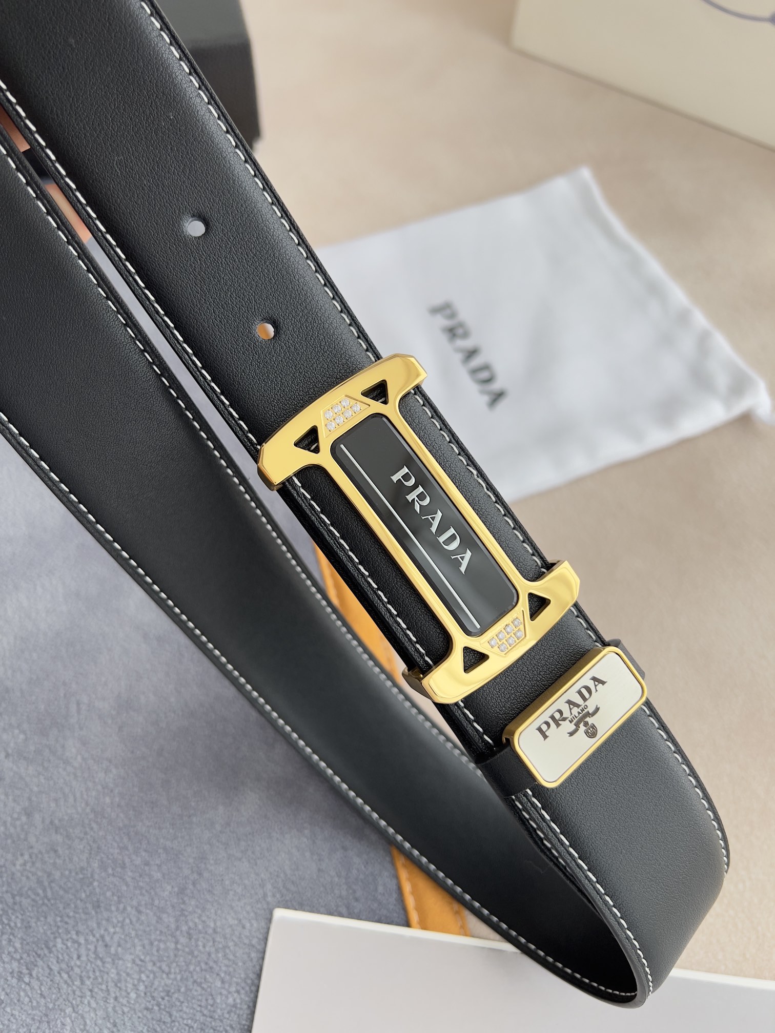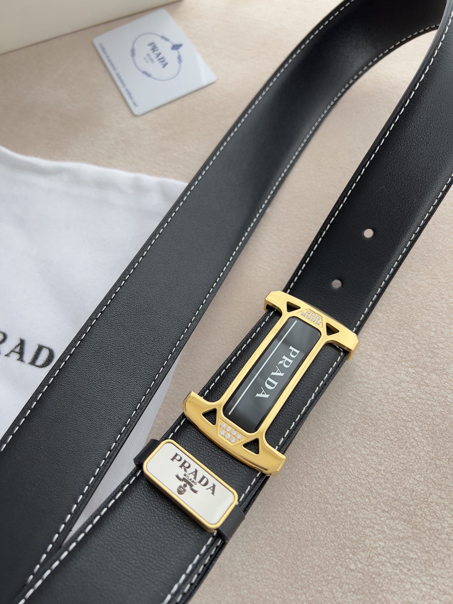 I5 Prada 普拉达 原单腰带·皮带 型号:挂扣,经典亚克力纯钢材质挂扣,镶钻扣,图片实物拍摄 材料:百分百头层牛皮,保证真皮.24k纯钢扣双面可用专柜同等质量, 双面头层牛皮黑色平纹,亚克力贴片扣,镶钻扣,金扣,送人自用首选 包装请认准如图专柜包装,赠送打孔器,原版电子发票,宽度3.8mm