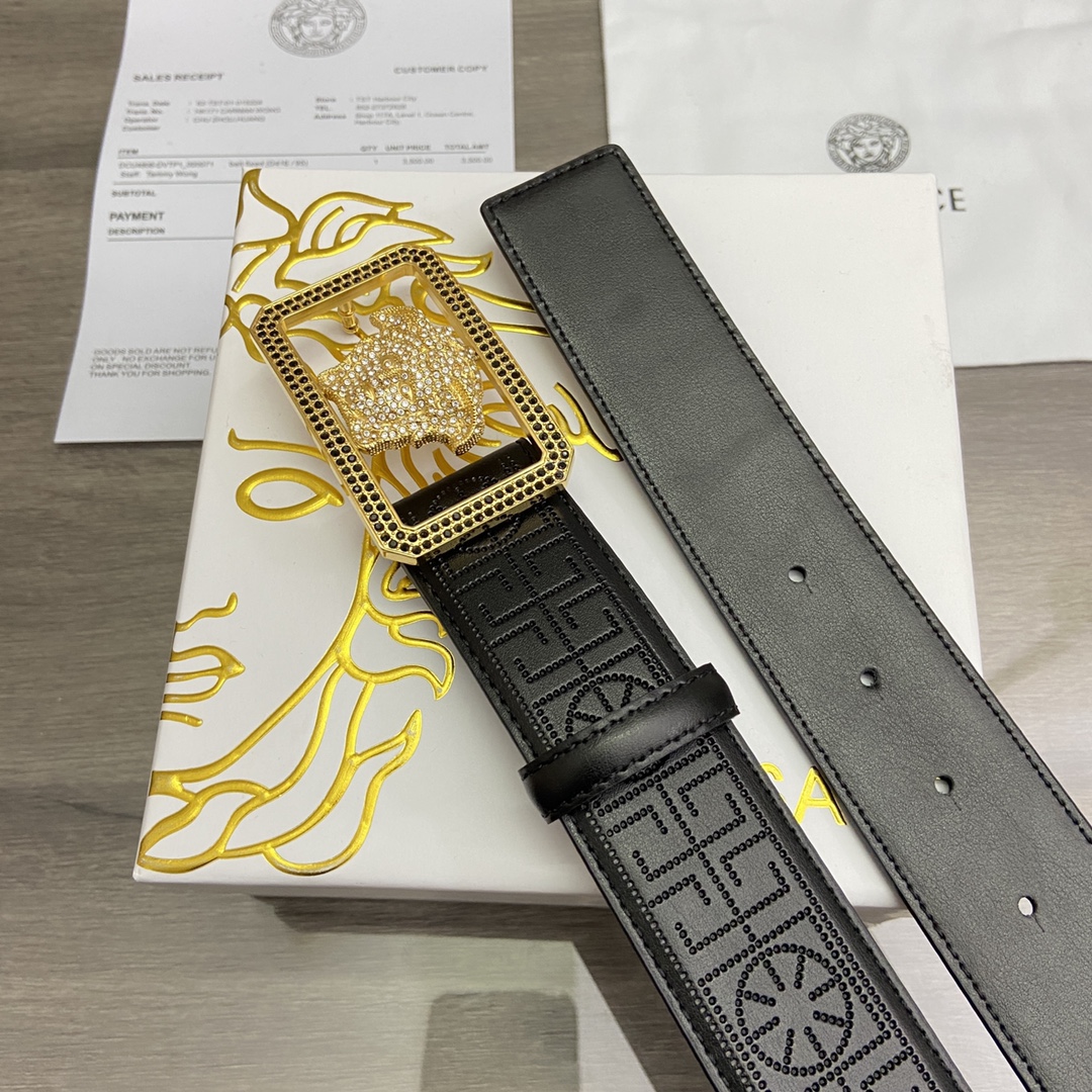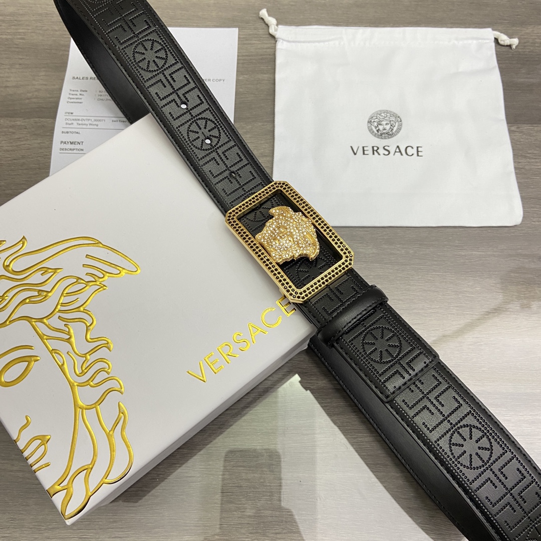I5 Versace 范思哲 皮带腰带:单面使用专柜质量、百分百头层牛皮压花、24k纯钢扣、送人自用首选、保证真皮 包装:请认准图片专柜包装、送打孔器 全套包装 宽度:3.8cm 长度:国标cm-cm 不可以自行裁剪长度