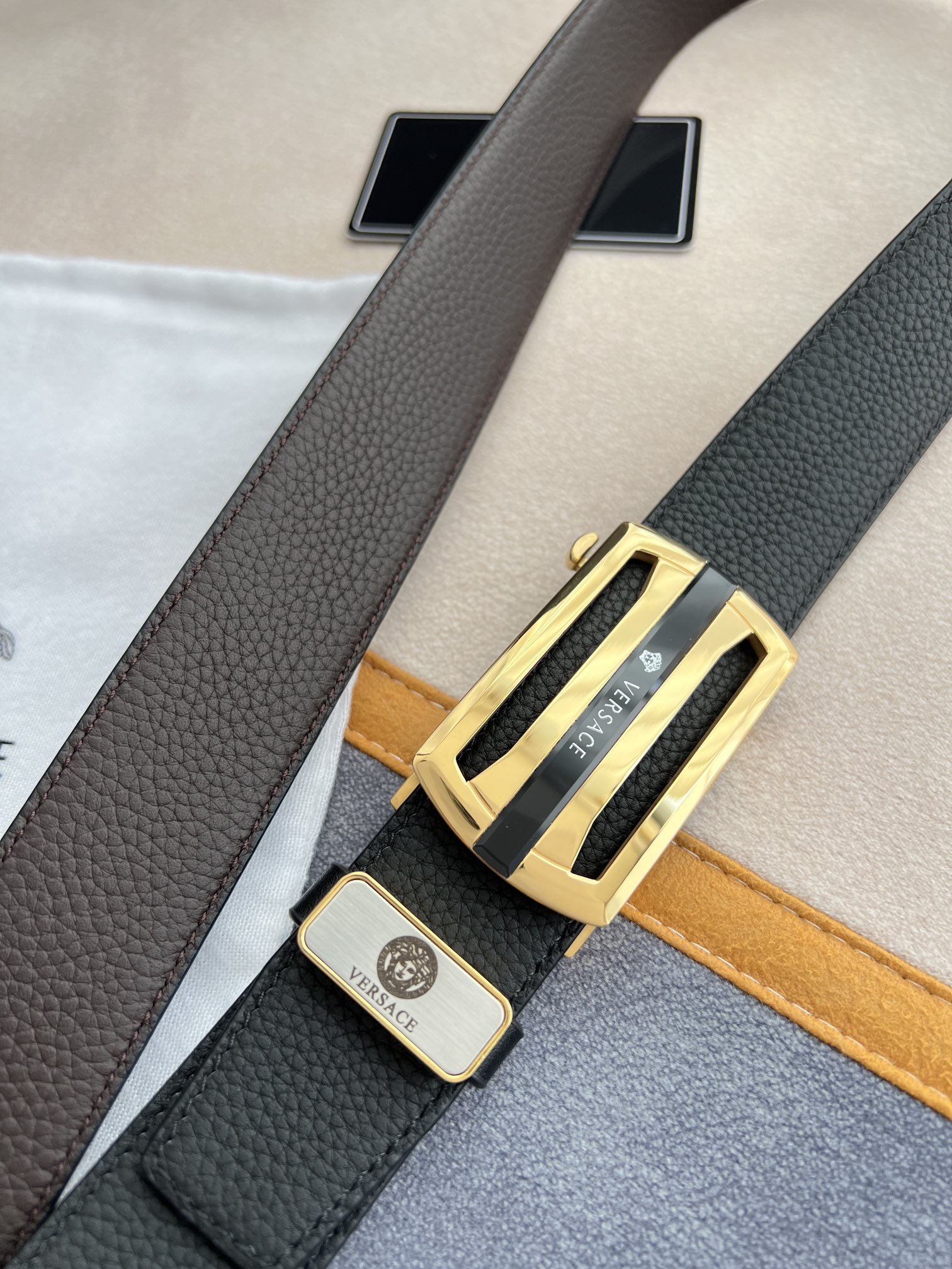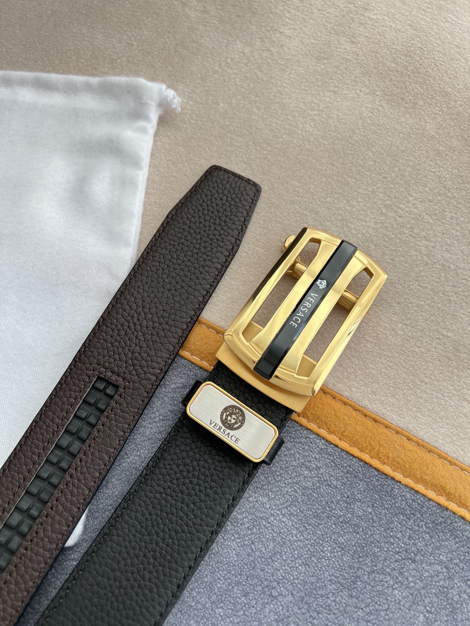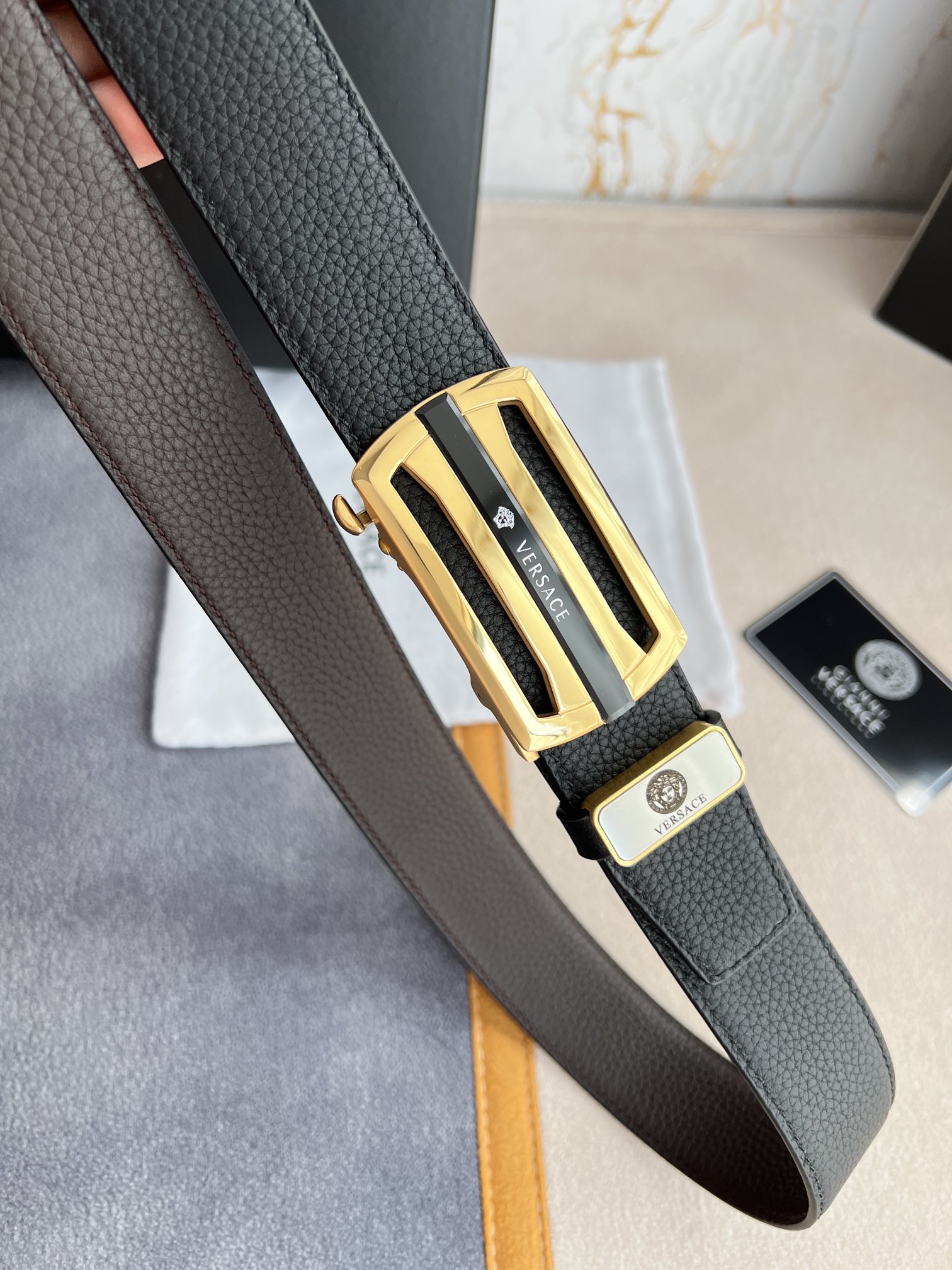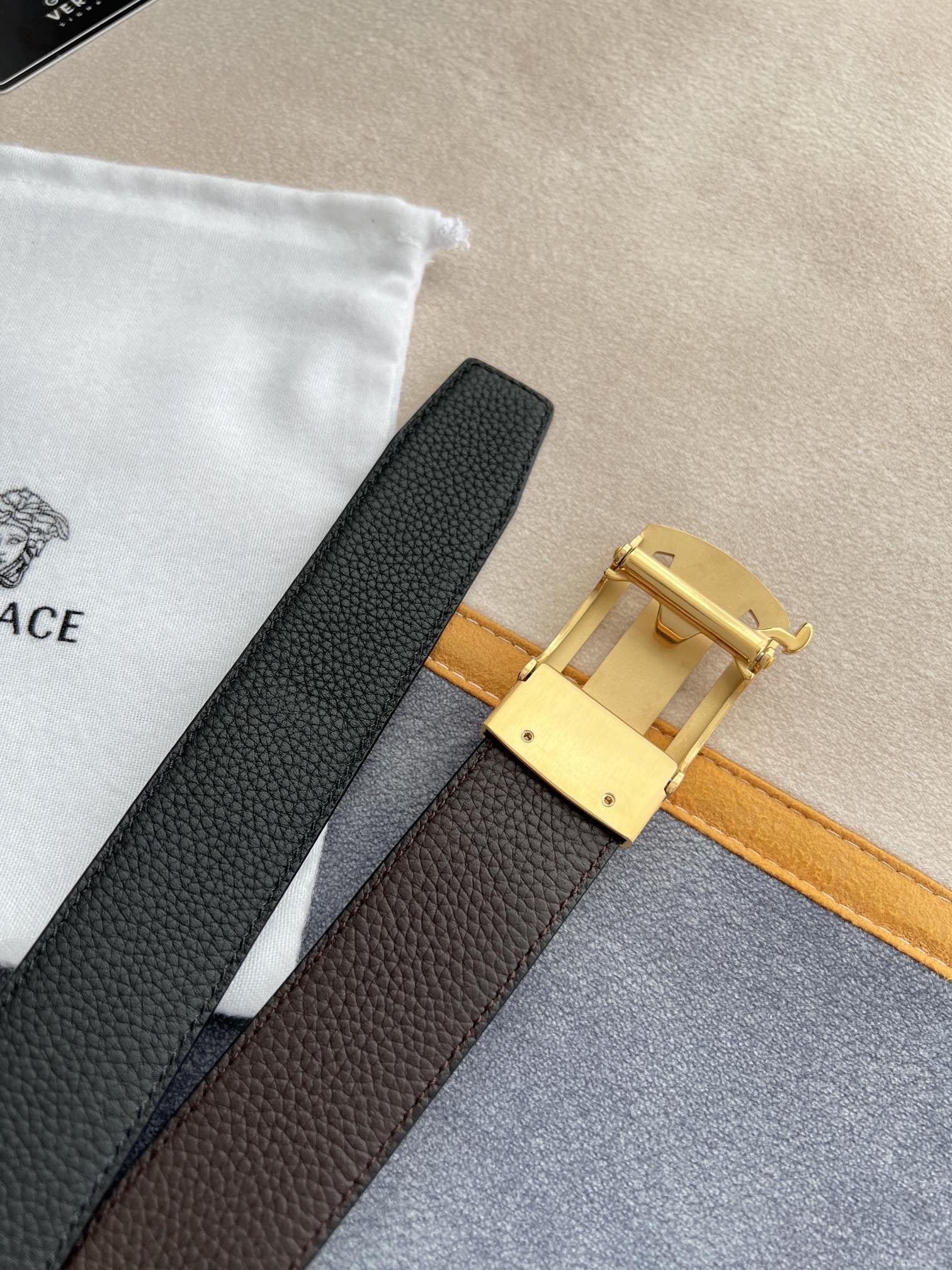 I5 Versace 范思哲 VERSACE.皮带腰带自动皮带p 型号:自动带身,纯钢材质经典人头自动扣,图片实物拍摄 腰带:百分百头层牛皮,自动带身,保证真皮.24k纯钢扣永不掉色专柜同等质量,经典头层牛皮双面荔枝纹,黑咖,金扣,镂空人头纯钢材质扣头,可自由裁剪,送人自用首选 包装请认准如图专柜包装,赠送拆卸工具,原版电子票,宽度3.5cm