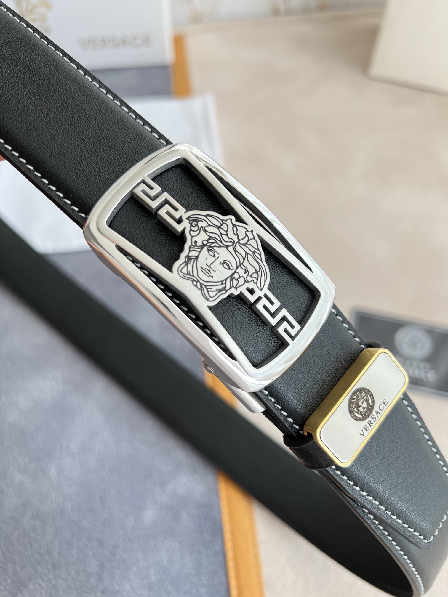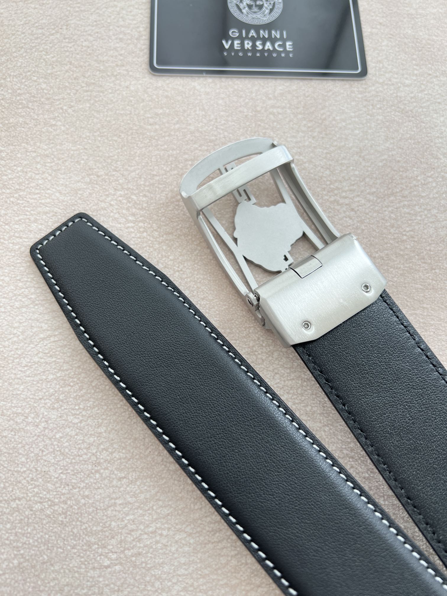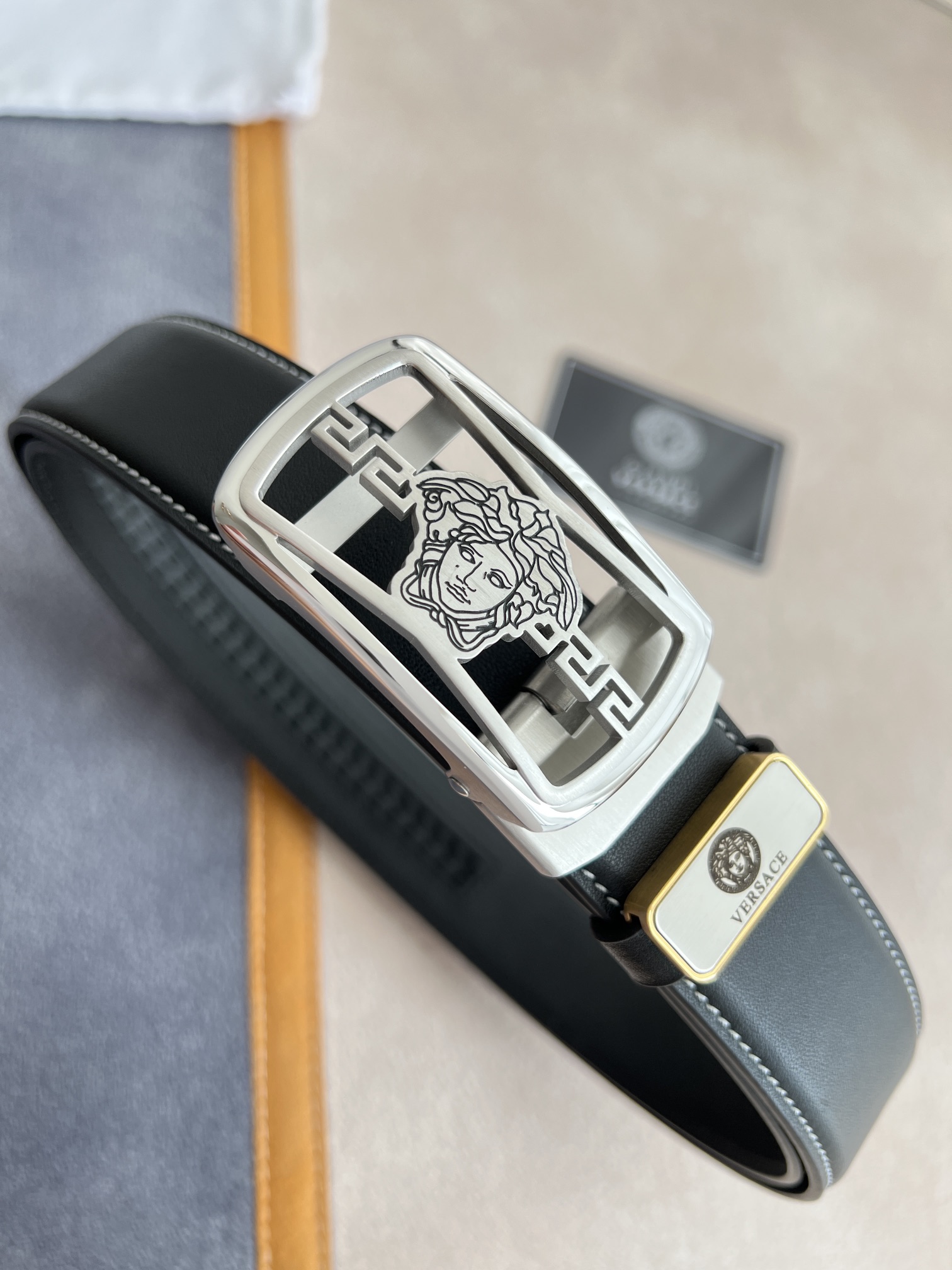I5 Versace 范思哲 VERSACE.皮带腰带自动皮带p 型号:自动带身,纯钢材质经典人头自动扣,图片实物拍摄 腰带:百分百头层牛皮,自动带身,保证真皮.24k纯钢扣永不掉色专柜同等质量,经典头层牛皮平纹白线头层牛皮平纹底,银扣,镂空人头纯钢材质扣头,可自由裁剪,送人自用首选 包装请认准如图专柜包装,赠送拆卸工具,原版电子票,宽度3.5cm