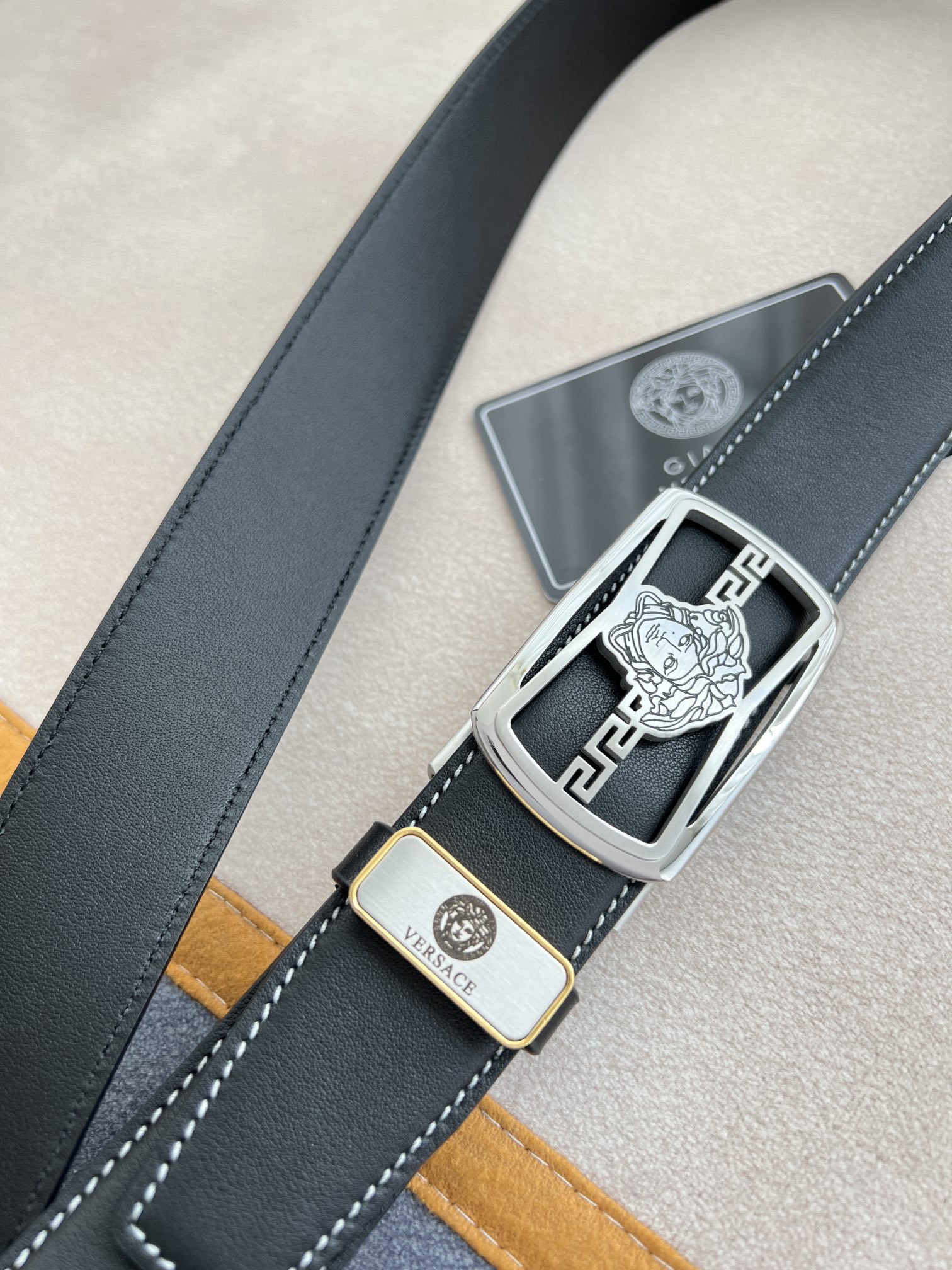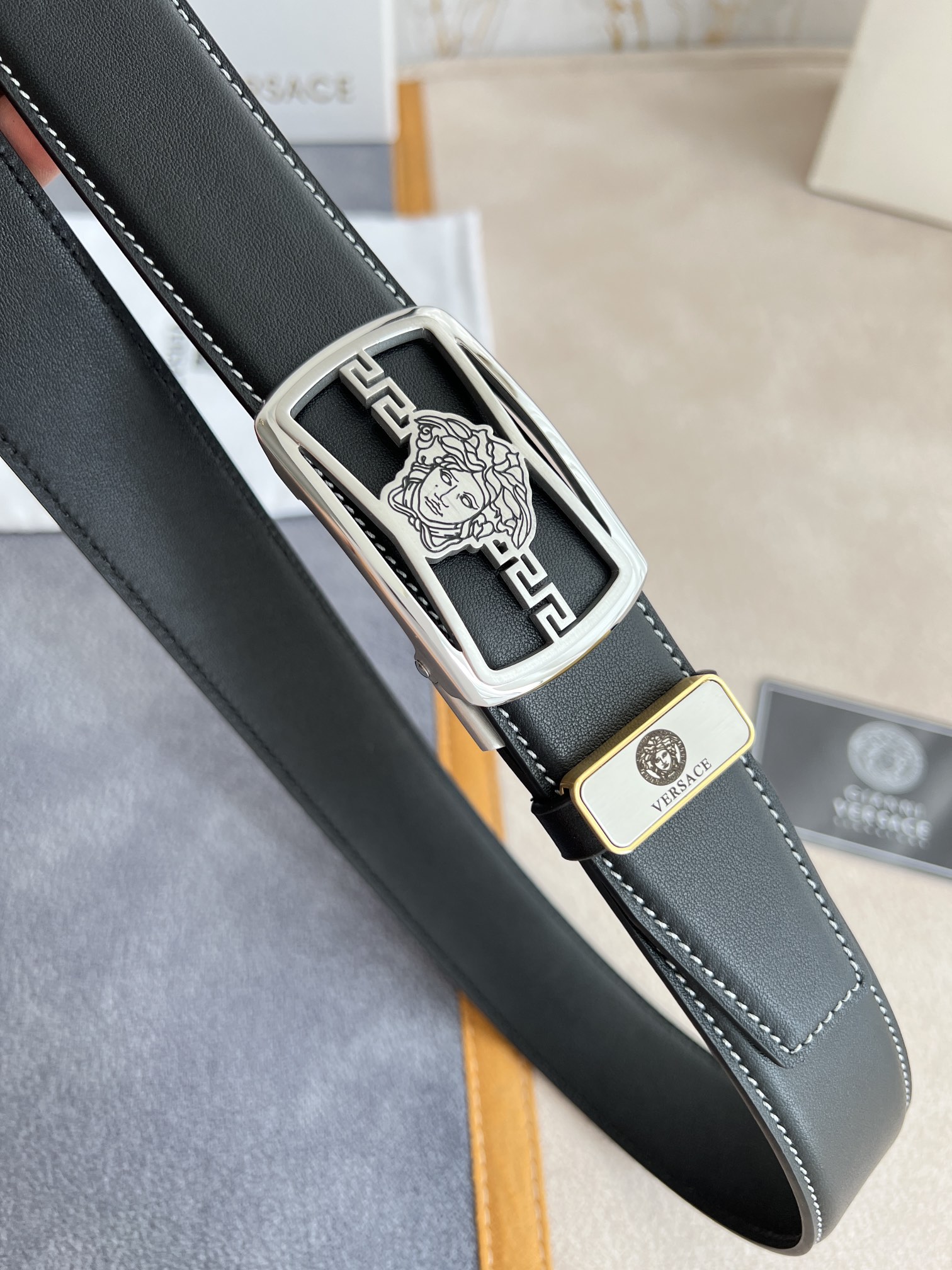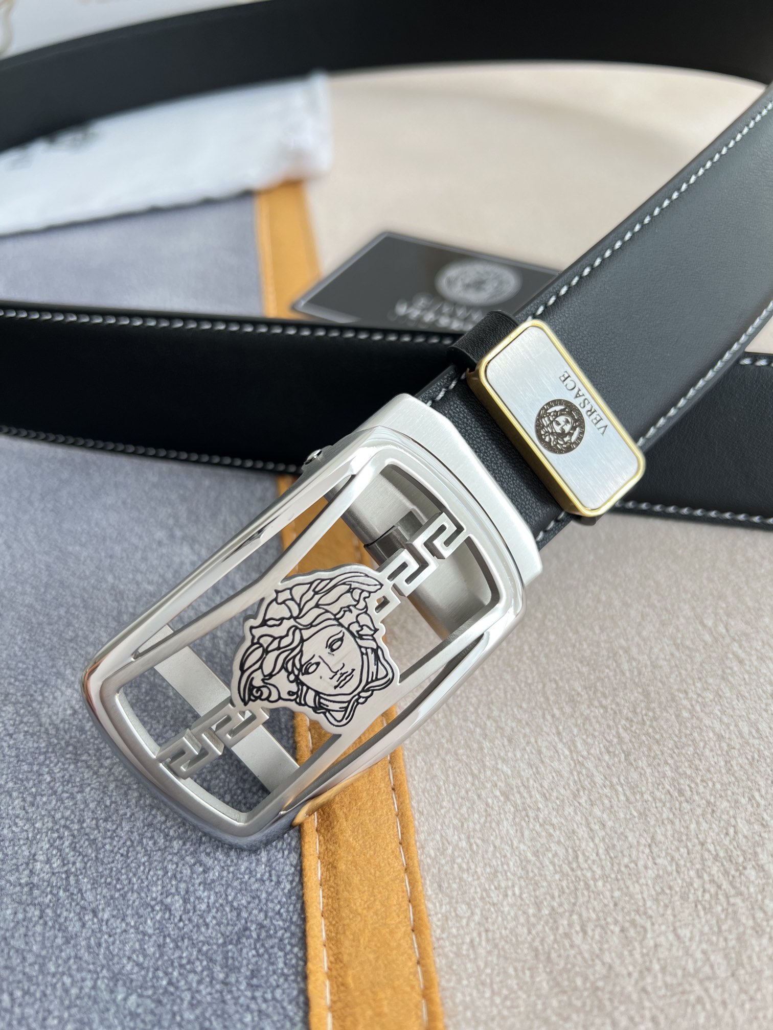 I5 Versace 范思哲 VERSACE.皮带腰带自动皮带p 型号:自动带身,纯钢材质经典人头自动扣,图片实物拍摄 腰带:百分百头层牛皮,自动带身,保证真皮.24k纯钢扣永不掉色专柜同等质量,经典头层牛皮平纹白线头层牛皮平纹底,银扣,镂空人头纯钢材质扣头,可自由裁剪,送人自用首选 包装请认准如图专柜包装,赠送拆卸工具,原版电子票,宽度3.5cm