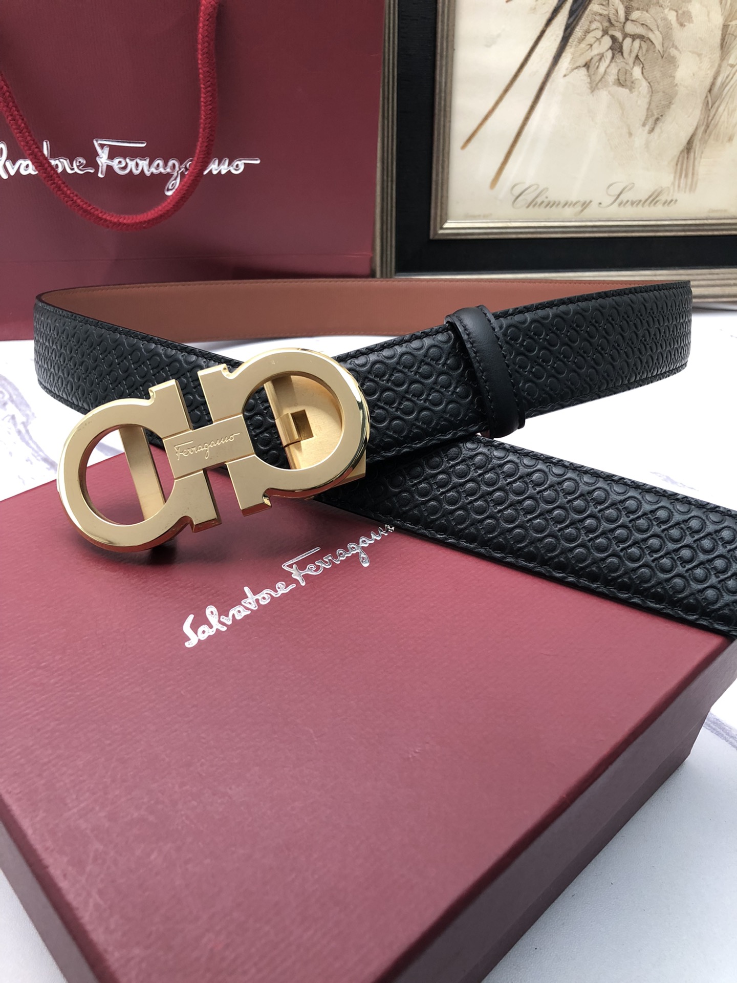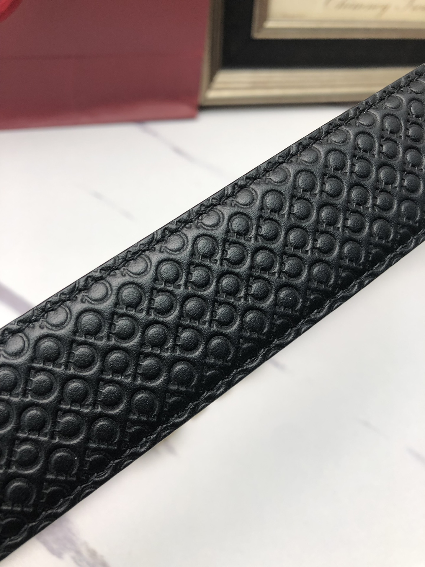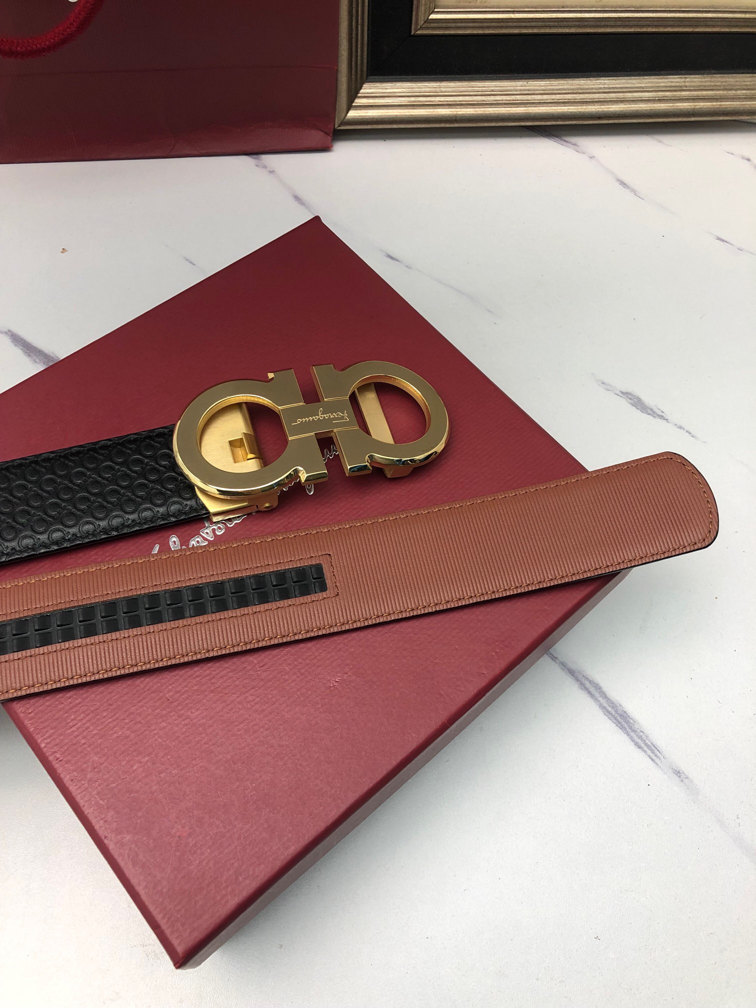 J0 Ferragamo 菲拉格慕 原单头层牛皮压花纹面,内衬头层小牛皮底,搭配原单自动扣,可裁剪的自动带,此款腰带面双采用意大利原定厂制进口牛皮带身 ,对专版柜足宽3.5CM