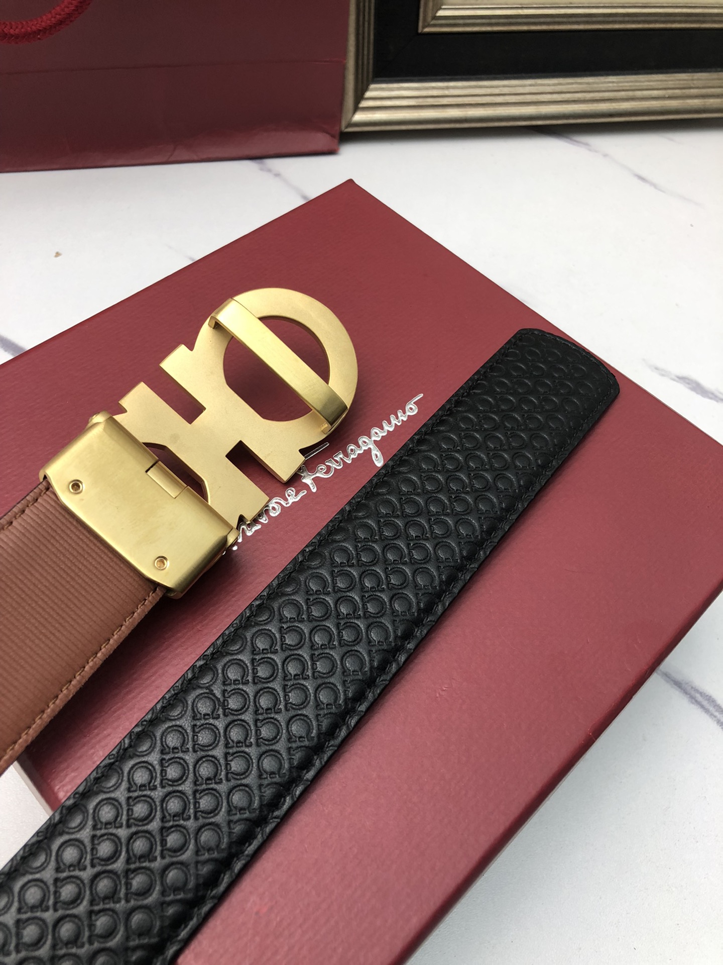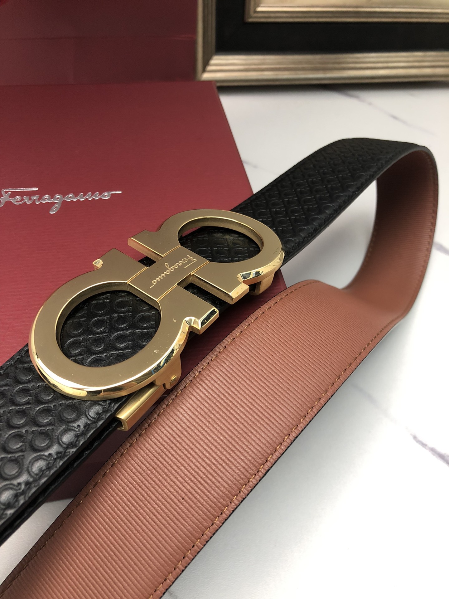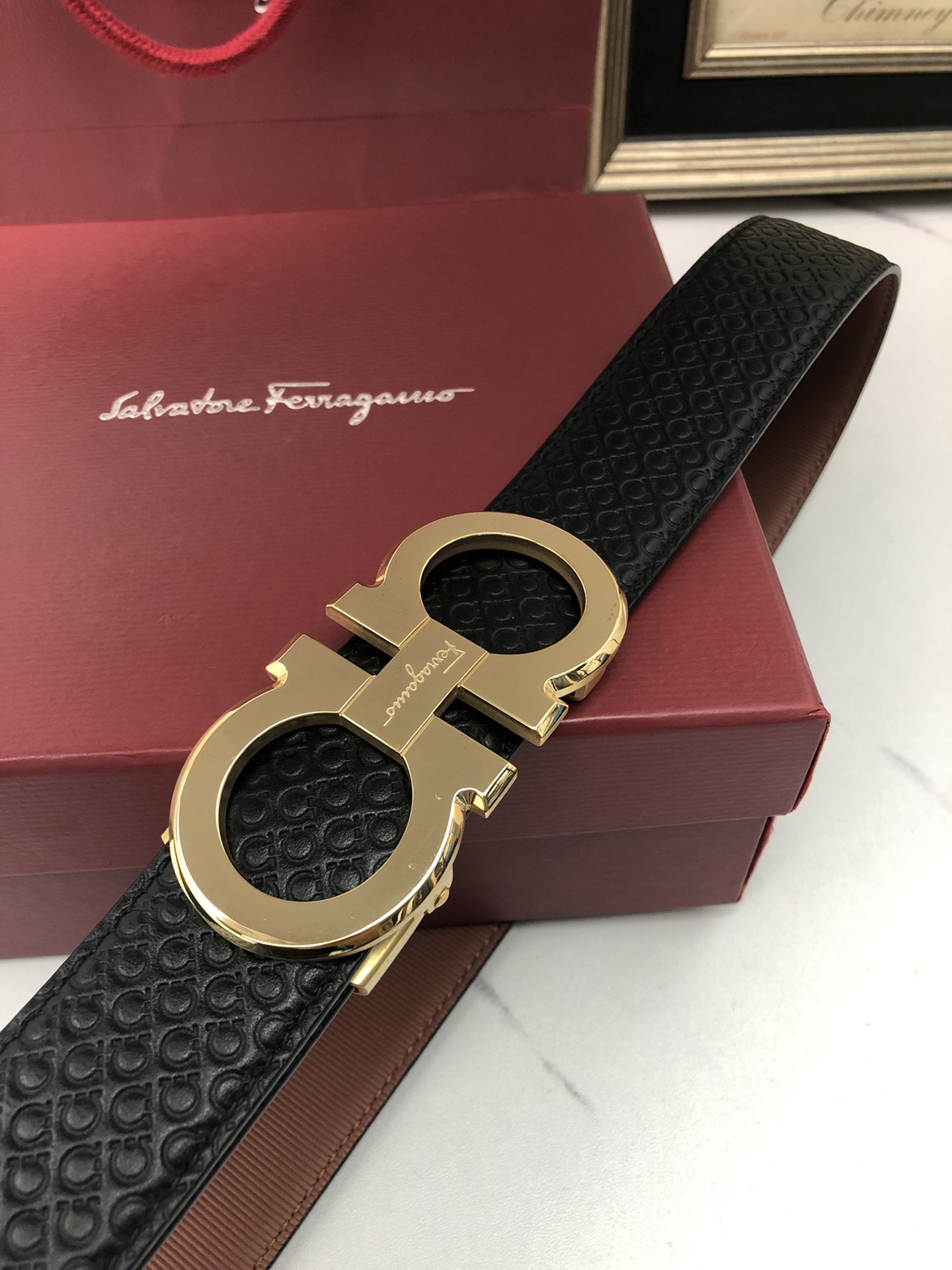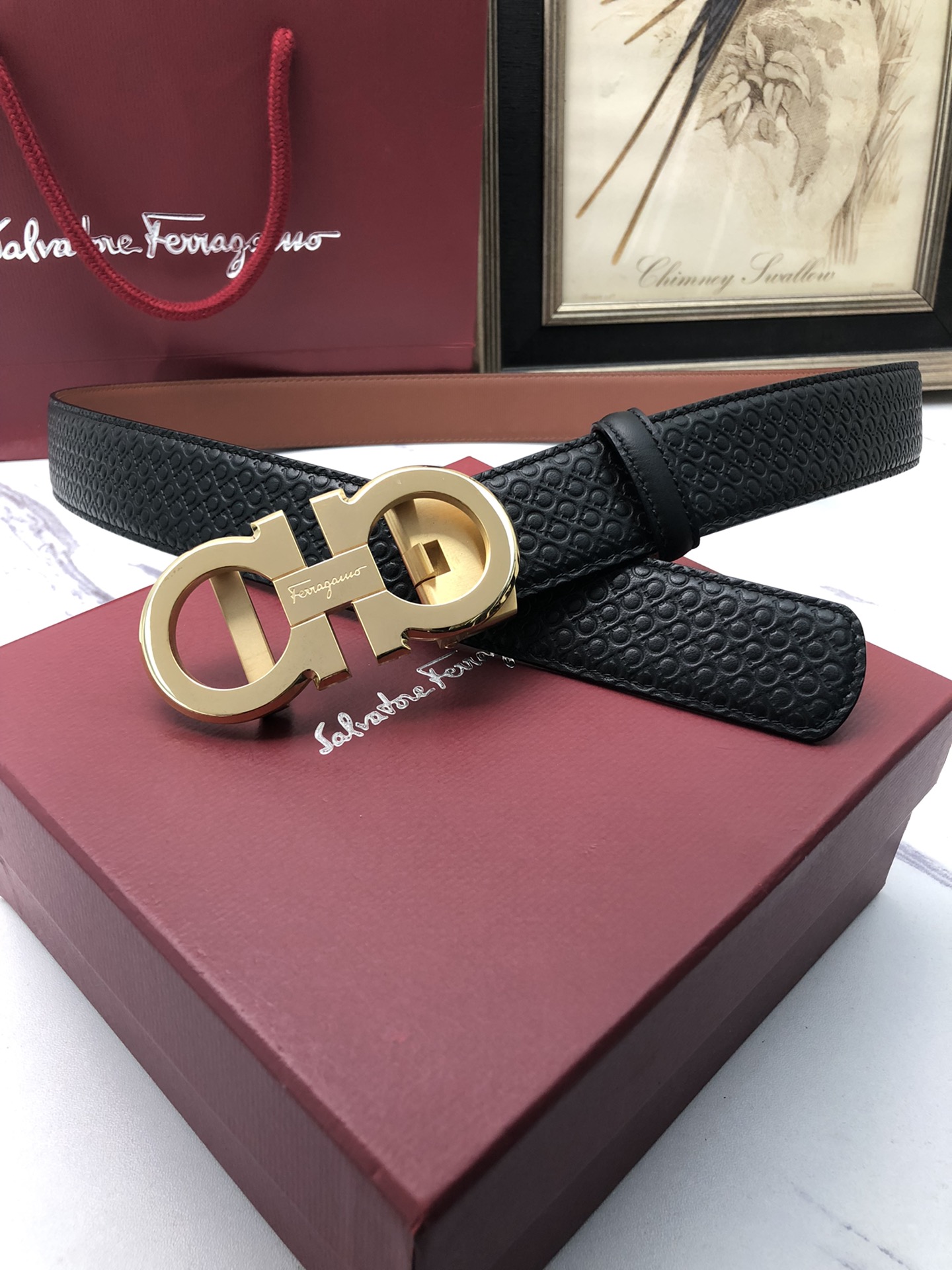 J0 Ferragamo 菲拉格慕 原单头层牛皮压花纹面,内衬头层小牛皮底,搭配原单自动扣,可裁剪的自动带,此款腰带面双采用意大利原定厂制进口牛皮带身 ,对专版柜足宽3.5CM