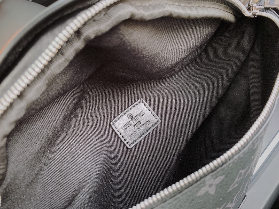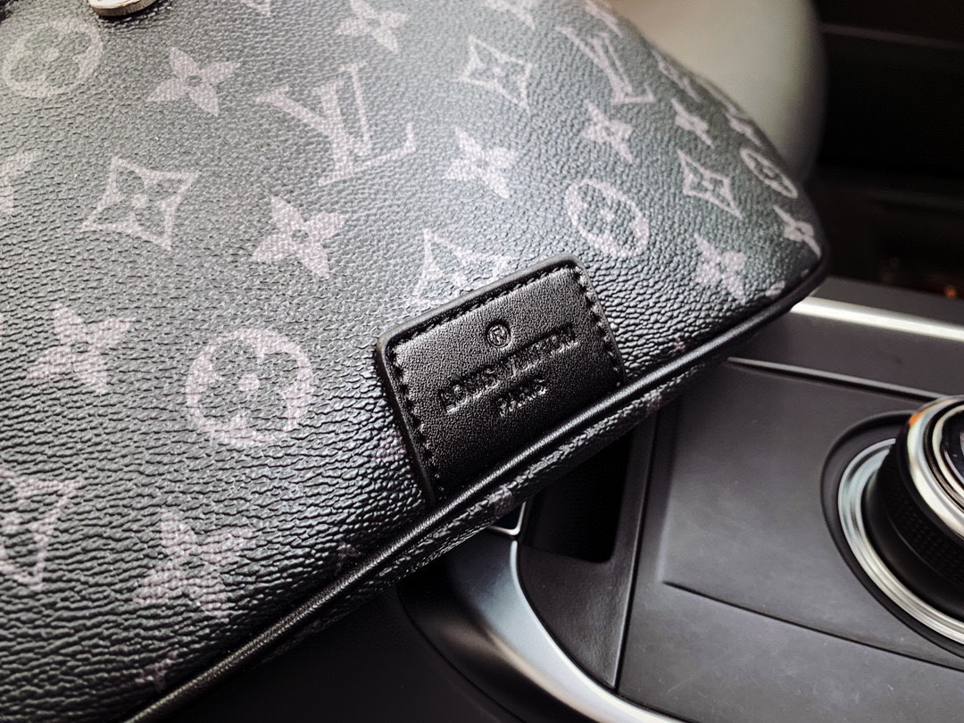 H0 高端货 “Louis Vuitton”胸包 M44336 DISCOVERY 腰包 Discovery 腰包属于 Gaston Labels 系列,由 Monogram Eclipse 帆布制成, 饰有压纹皮革贴饰.此限量版款式借鉴路易威登之孙 Gaston-Louis Vuitton 收藏的复古行李标签设计.配有可调节腰带和多个拉链口袋,可安全容纳贵重物品. 详细特征 47.0x 20.0x 9.0 cm 长x 高x 宽 * \t\t草原黄 * \t\tMonogram Eclipse 涂层帆布 * \t\t牛皮饰边 * \t\t织物内衬 * \t\t银色金属硬件 * \t\t可调节腰带 * \t\t正面拉链隔层 * \t\t2 个拉链外袋 * \t\t背面拉链袋 配:礼盒p