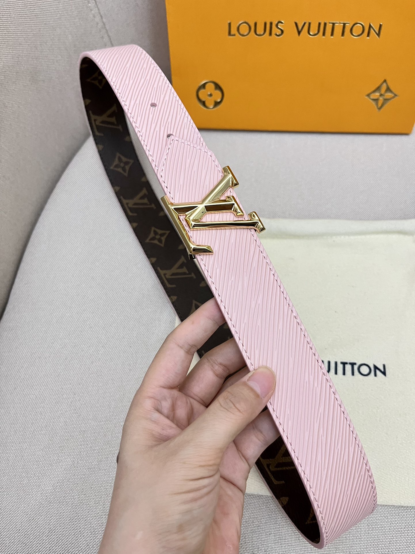 I0 Louis vuitton 路易威登 LV 皮带腰带:双面使用专柜质量、头层牛皮、24k纯钢扣、送人自用首选、保证真皮 包装:请认准图片专柜包装、送打孔器 全套包装 宽度:3.5 cm 长度:国标cm-cm 不可以自行裁剪长度