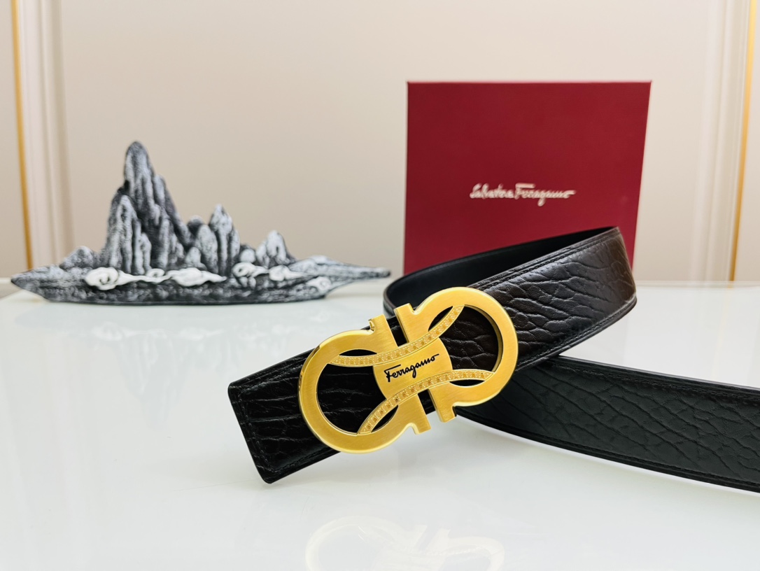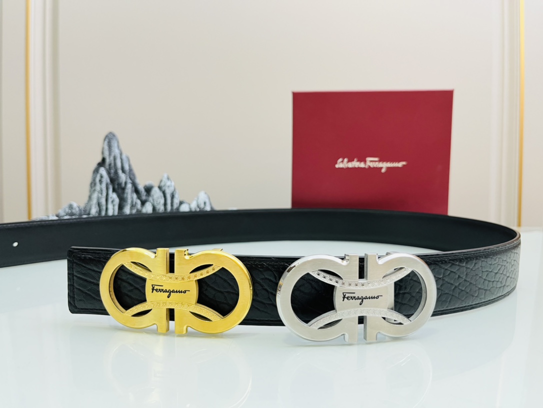 I5 Ferragamo 菲拉格慕 皮带腰带:双面使用专柜质量、百分百头层牛皮、24k纯钢扣、送人自用首选、保证真皮 包装:请认准图片专柜包装、送打孔器 全套包装 宽度:3.8cm 长度:国标cm-cm 不可以自行裁剪长度